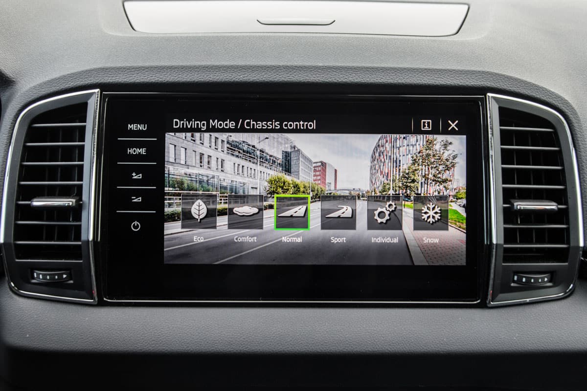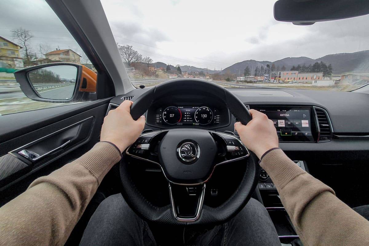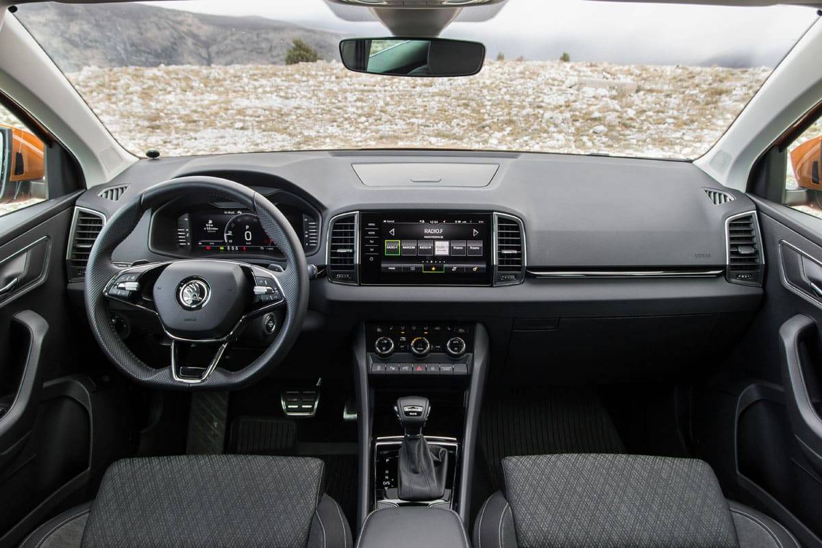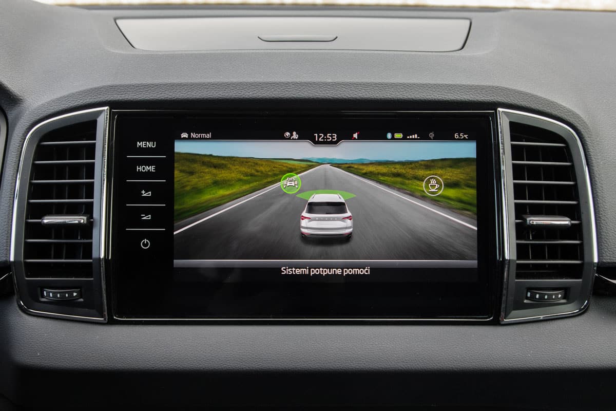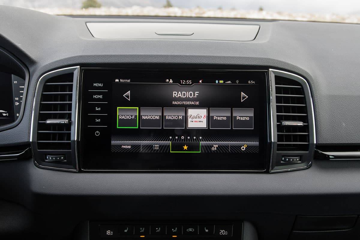 ŠKODA je u KAROQ modelu zadržala još uvijek najbolji omjer digitialnih i analognih rješenja pa tako ispred vozača imamo standardni (8 inčni) kombinovani digitalni instrument (Virtual Cockpit). Testni model bio je opremljen opcionim većim Vrtual Cockpitom čija dijagonalna dužina ekrana je 10,25 inča i nudi mogućnost promjene grafičkog okruženja. Shodno izboru grafičkog okruženja različit je broj prikazanih informacija, pa tako svaki vozač može pronaći ono što mu odgovara i što mu je potrebno tokom vožnje.