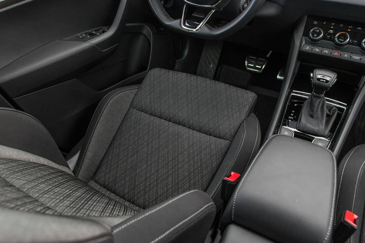 Unutrašnjost modela KAROQ dobila je detalje koji je čine svježijom pa tako imamo nove opcije presvlaka za sjedište, nove boje ukrasnih elemenata na bočnim tapacirunzima, kao i neizostavne “piano black” elemente. Ono po čemu je KAROQ bio poznat jesu dobro odabrni materijali za izradu unutrašnjosti što se pokazalo i kroz vrijeme korištenja. Dobrim pozicioniranjem kvalitetnih materijala i odličnom završnom obradom izbjegnuta su iritantna škriputanja, ali i ostavljanje jefitninog utiska što nije čest slučaj i kod puno skupljih premium modela.