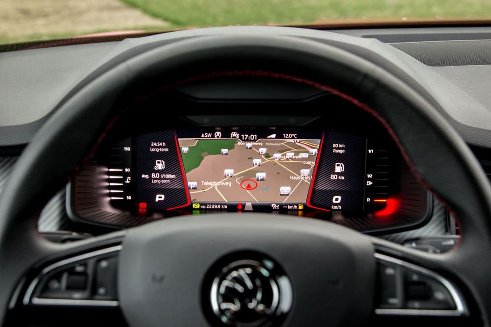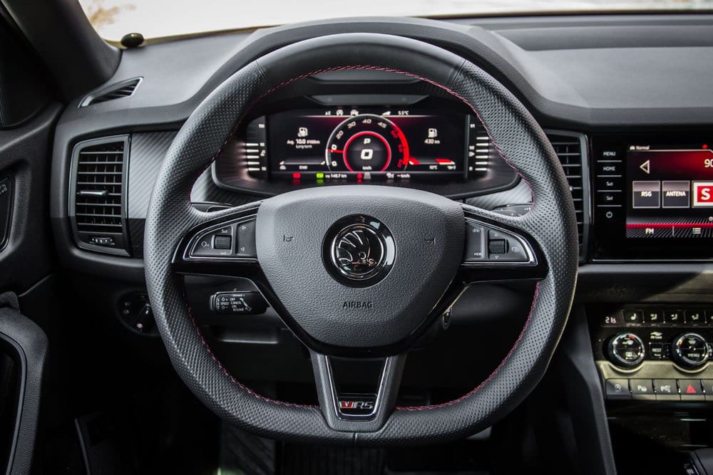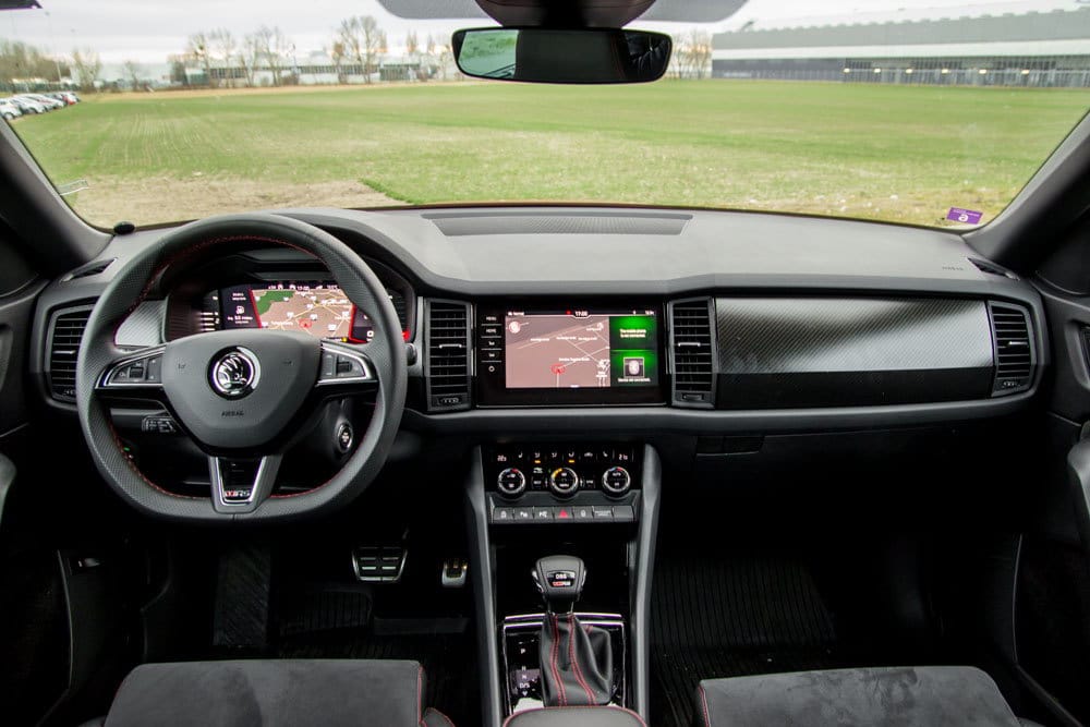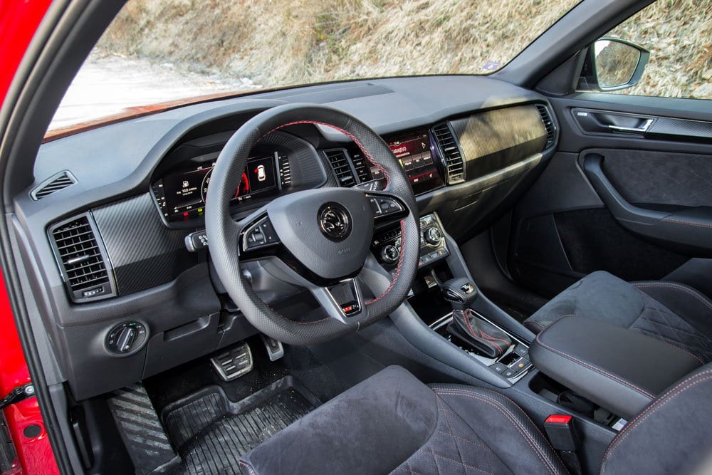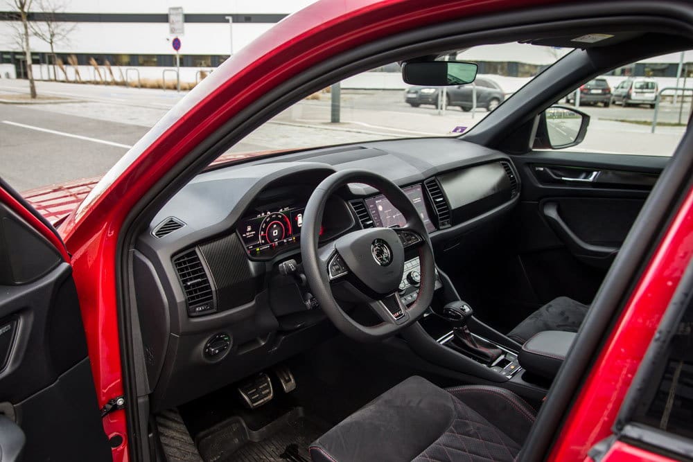 Unutrašnjost Kodiaq vRS-a napravljena je na nivou prestižnih konkurentskih modela u pogledu dizajna i finalne obrade. RS geni u unutrašnjosti automobila jasno su istaknuti, pa tako npr. vozač ispred sebe ima novi virtuelni kokpit u posebnom dizajniranom grafičkom izdanju.