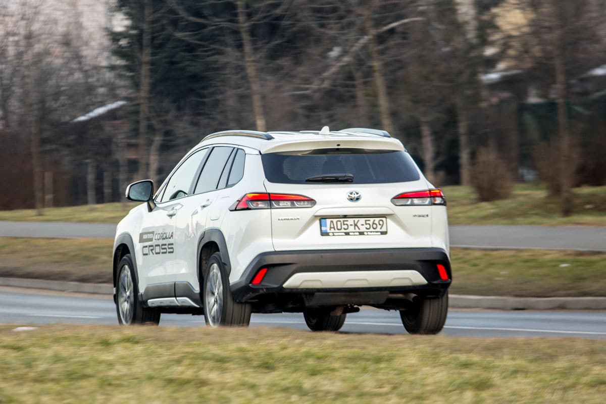 Cjelokupan vanjski dizajn automobila kreiran je u kombinaciji oštrih i zaobljenih linija, pa su tako recimo velike ravne plohe razbijene oštrim linijama. Snažan karakter naglašen je proširenim branicima, a tu su i plastični zaštitni elementi na karoseriji koji ukazuju da na offroad afinitete Corolla Cross modela. Ukratko rečeno Corolla Cross izgleda moderno, originalno i već na prvi pogled prepoznatljivo.