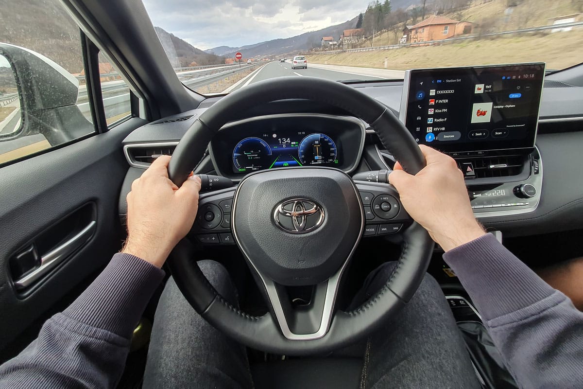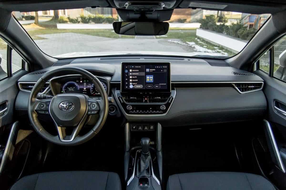 Dočekat će vas već poznat dizajn instrument table, upravljača, centralnog ekrana Infotainment sistema, rasporeda komandi ventilacionog sistema i ručice mjenjača. Za razliku od hatchback modela ispod komandi klimatizacije nalaze se veliki prekidači za paljenje grijača sjedišta i grijanje kola upravljača. Iako volimo i hvalimo prave prekidače zbog svoje jednostavnosti korištenja, a koji su gotovo pa izumrli u većini novih modela, ipak ne možemo reći da Toyota nije mogla napraviti estetski ljepše rješenje.