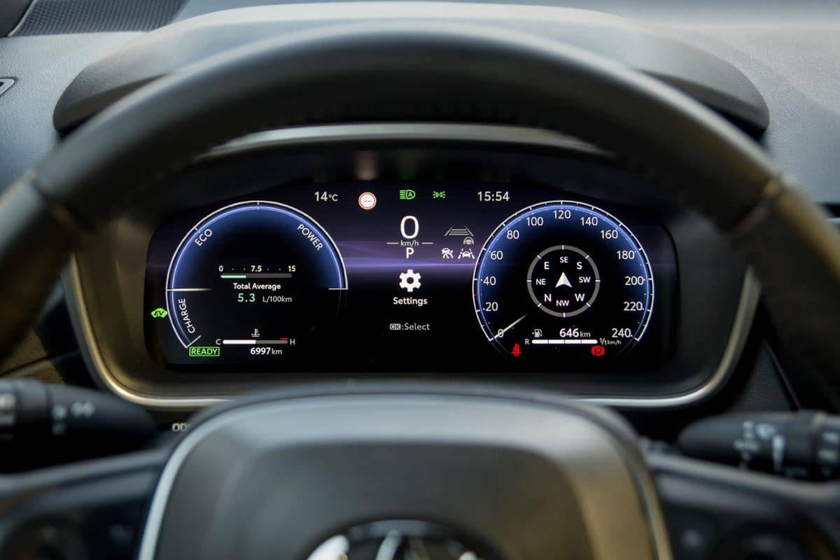 Duže vremena Toyota je izbjegavala napraviti potpunu digitalizaciju kombinovanog instrumenta, ali od Corolla Cross dobila je potpuni i savremeni Virtual Cockpit. Ekran digitalne instrument table veličine je 12,3 inča i dolazi kao dio standardne opreme. Grafičko okruženje je fabrički “zaključano” međutim unutar njega možete mijenjati raspored prikaza informacija.