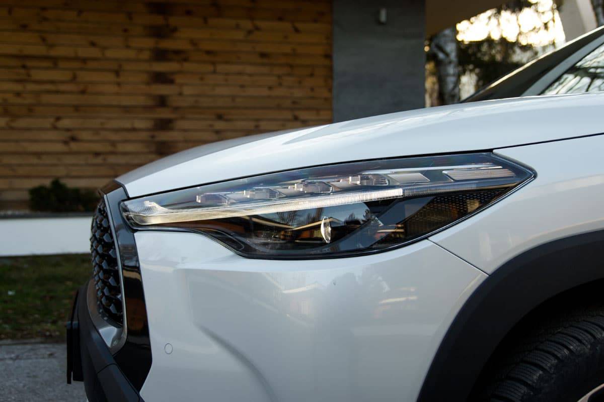 Već na prvi pogled Corolla Cross ostavlja utisak puno ozbiljnijeg, robusnijeg i snažnijeg automobila od samo puko podignutih crossovera. Zapravo Corolla Cross je pravi SUV model! Velika maska motora i velike zaštitne plastike potenciraju snagu i offroad karakter automobila, a tu su i velika prednja LED svjetla koja se proporcijama i dizajnom odlično uklapaju.