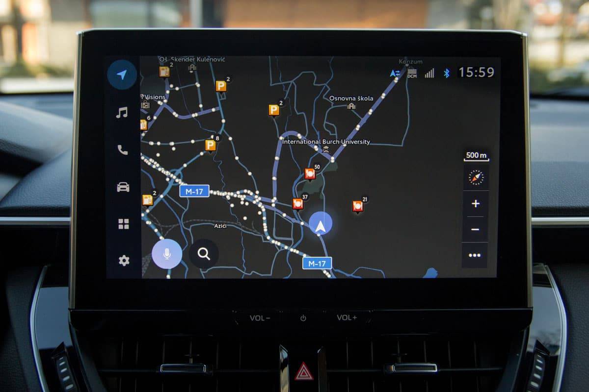 U nastavku vidokruga nalazi se i centralni ekran Infotainment sistema čija je dijagonalna veličina 10,5 inča. I tu je Toyota napravila značajan iskorak jer prolasci kroz okruženja poput navigacije, telefonije, audio sistema i slično rade vrlo brzo. Ipak samo grafičko okruženje moglo bi biti u modernijem izdanju, ali to je ta Toyotina filozofija – ne pridaje se pretjerana pažnja izgledu već funkciji i pouzdanosti.