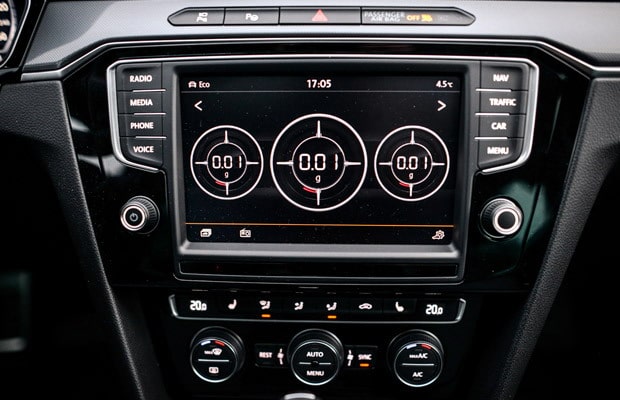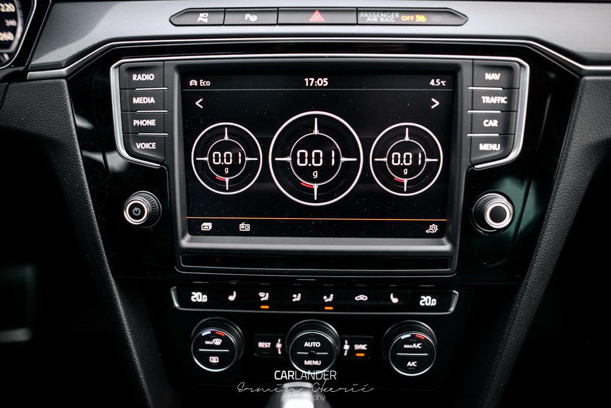 Passat B8 sigurno neće ući u takvu grupu automobila jer je testni model bio opremljen navigacionim sistemom Discover Pro, a slika se navigacionog sistema prikazuje na kolor ekranu osjetljivom na dodir dijagonale 8 inča. Car Net Guide & Inform Plus također je dio opreme koja u periodu od 3 godine i vremenski neograničeno, besplatno ažurira navigacione mape.