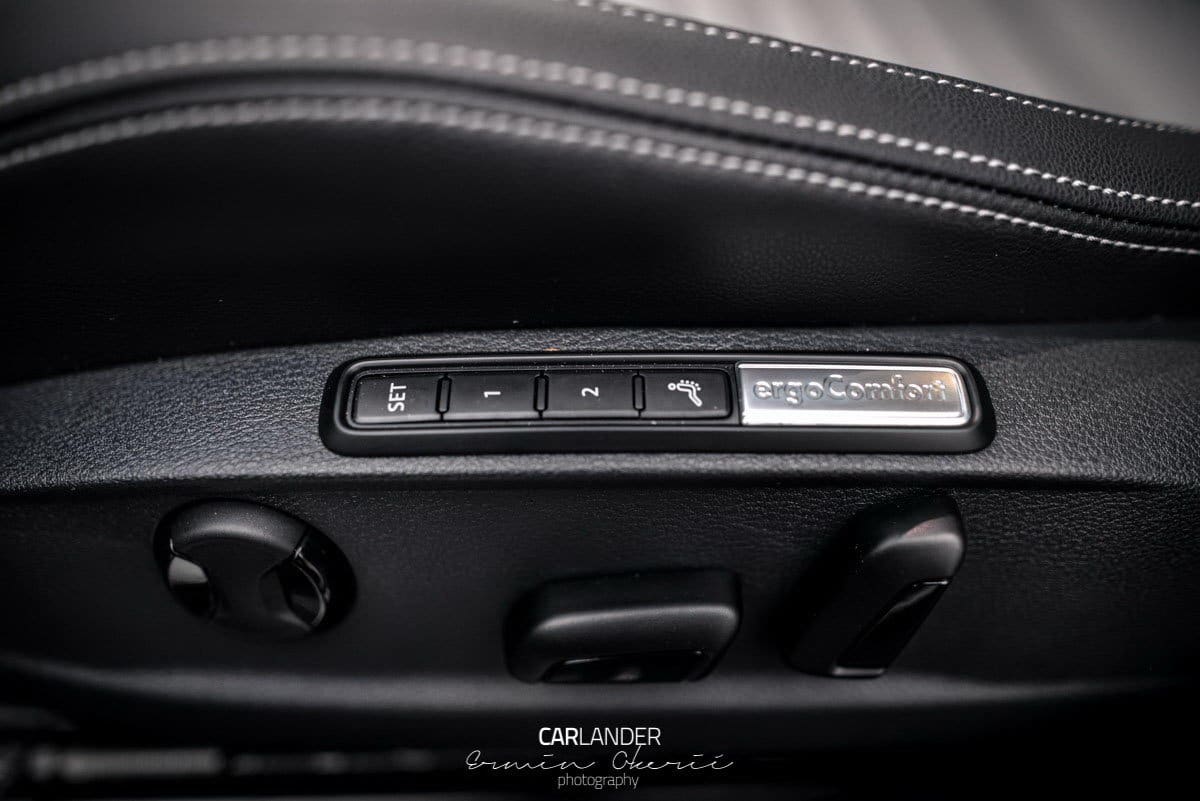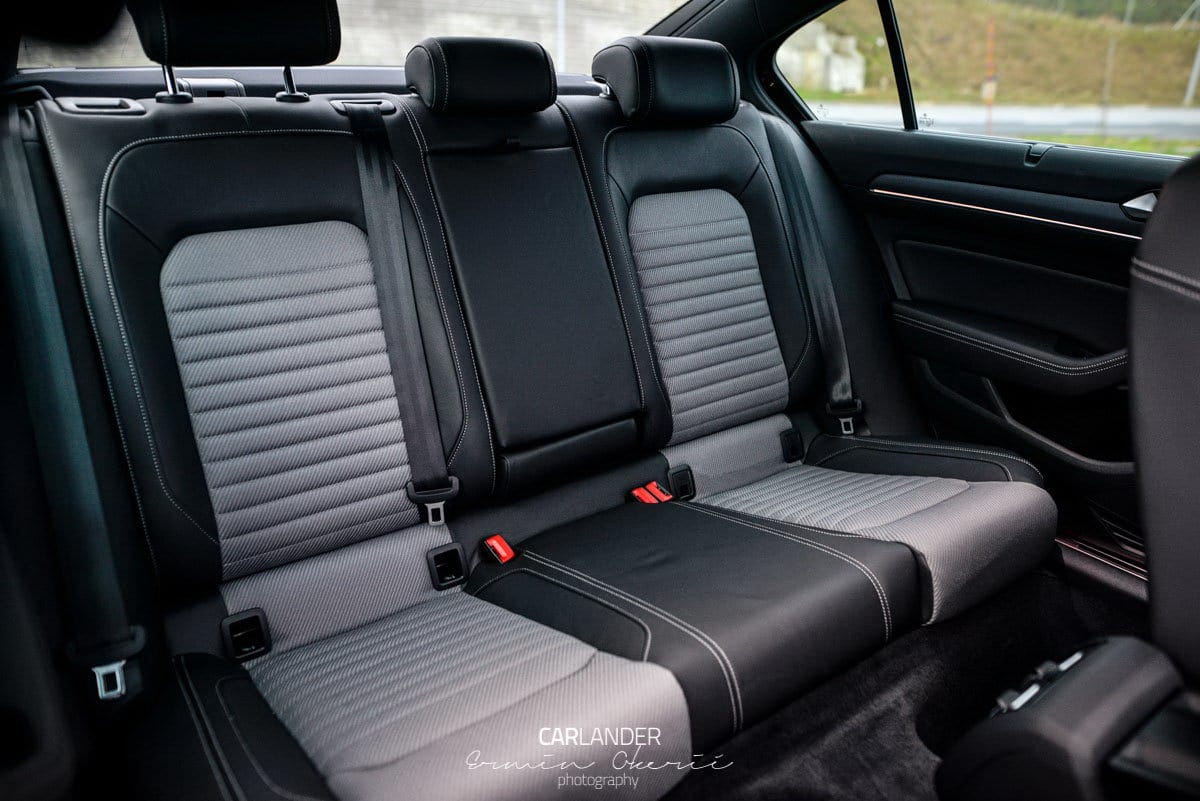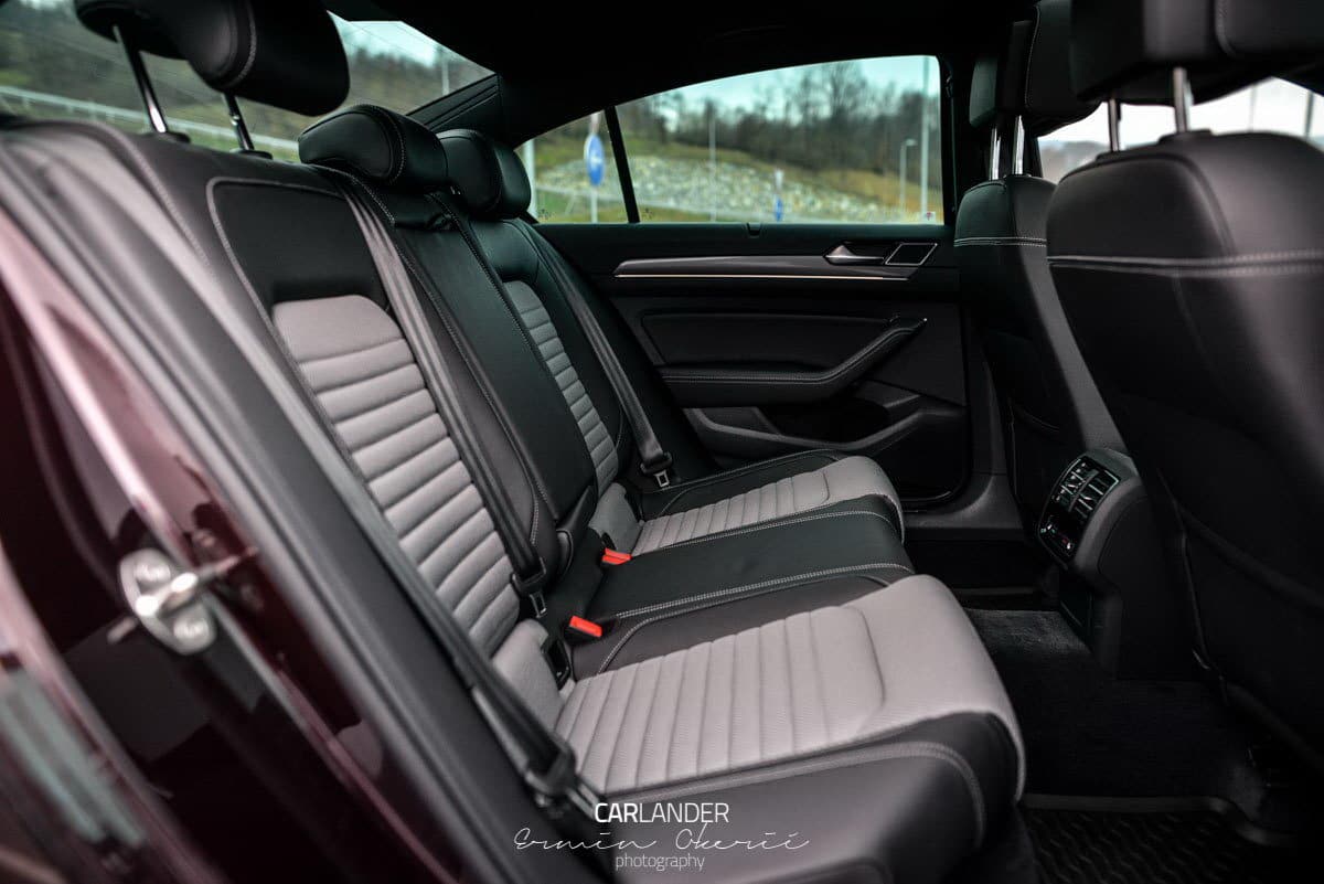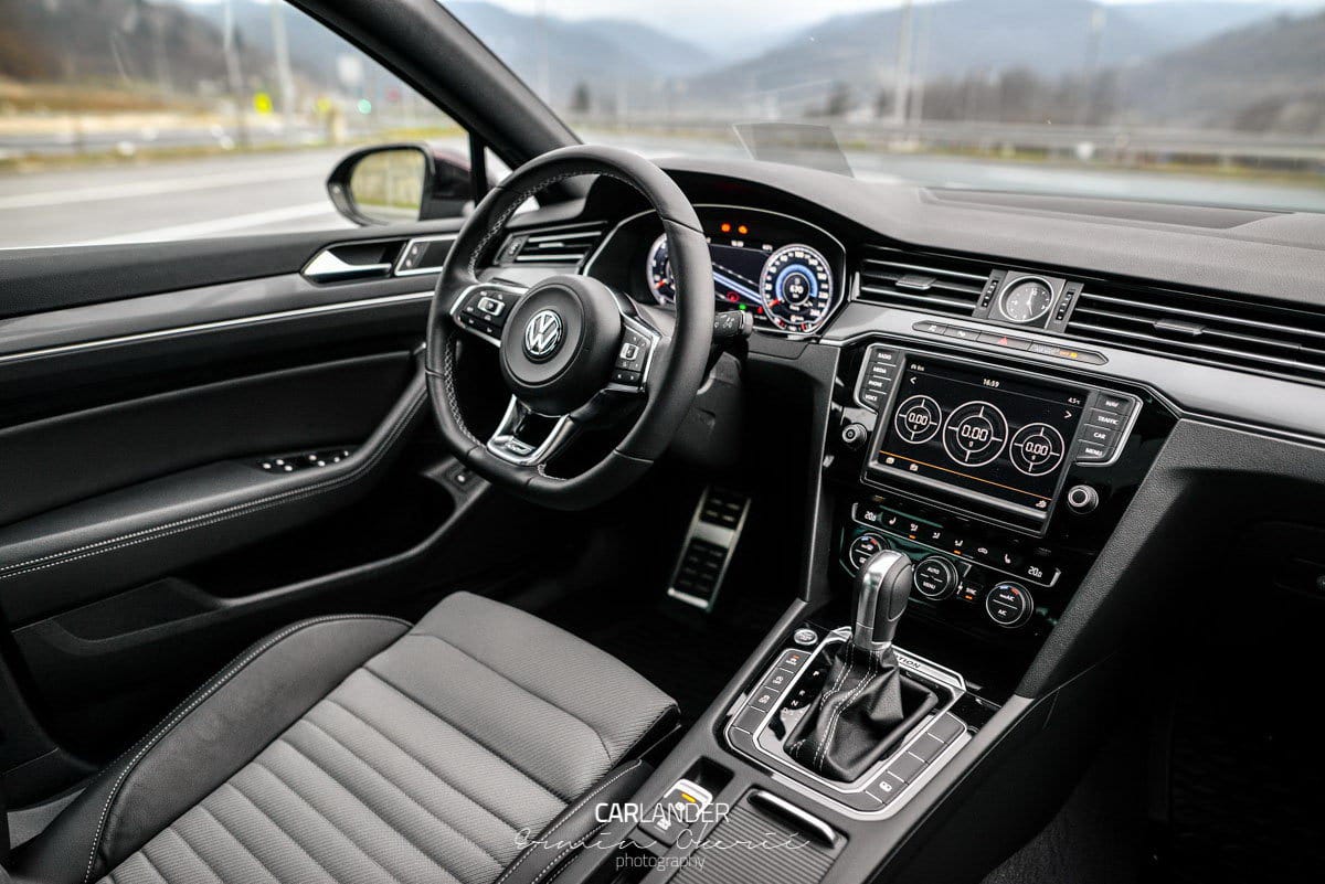 Unutrašnjost Passata R Line jasno je prepoznatljiva, već pri ulasku u automobil na naslonima prednjih sjedišta istaknuta je oznaka „R“, a sjedišta pružaju odličan komfor i bočnu potporu. Treba istaći da je testni model imao ergoComfort sjedište elektro podesivo u 14 pozicija, sa masažerom na vozačevoj strani. Također, vozačevo sjedište imalo je podršku u bedrenom području i mogućnost memorisanja pozicije, te komfornu funkciju za ulaz/izlaz iz vozila čime se olakšava ulazak i izlazak iz automobila (sjedište se samo pomjera naprijed/nazad pri ulasku i izlasku iz automobila).