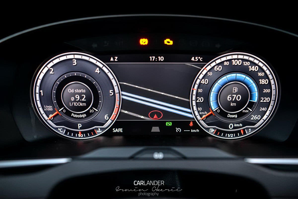 ACC – Automatska kontrola razmaka sa adaptivnim tempomatom za brzinu do 160 km/h ukljčujući sistem za nadzor saobraćaja sa upozorenjem na frontalni sudar Front Assist i City Emergency Braking dio je aktivne sigurnosne opreme testnog modela. Umor i nedostatak pažnje za volanom najčešći su uzroci fatalnih nesreća tokom dužih putovanja, a navedeni asistenti brinu da do takvih posljedica ne dođe. ACC sistem kada je aktivan automatski drži razdaljinu između vašeg i automobila ispred vas, pa tako ovaj sistem automatski sam koči i ubrzava automobil kako bi zadržao zadani razmak između dva automobila.