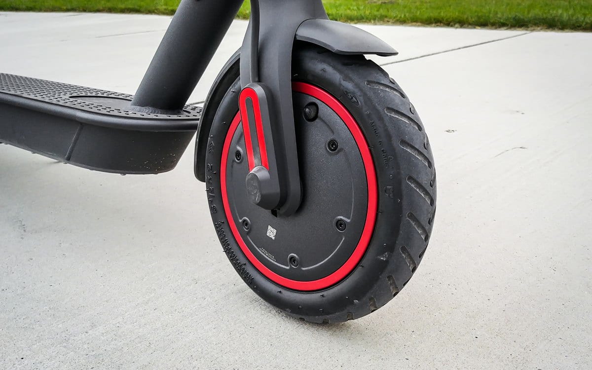 Ovaj električni romobil postavljen je na 8’ inčne točkove na koje su postavljene zrakom punjene gume. To je možda i jedina prava zamjerka na ovaj romobil jer se iste lahko mogu probušiti, ali Xiaomi uz romobil isporučuje i dvije rezervne gume. U prednjem točku nalazi se električni motor snage 250 W (trenutna max. 500), a maksimalni okretni moment iznosi 16 Nm. To je sasvim dovoljno da postigne maksimalnu brzinu od 25 km/h, a na tempomatu 18 km/h. Maksimalna brzina uz određene modifikacije može biti veća (što nije preporučeno zbog garancije), ali ona je prilagođena evropskim propisima o sigurnosti da ne bi bili obavezni nositi kacigu.