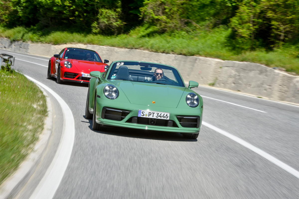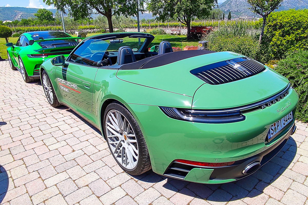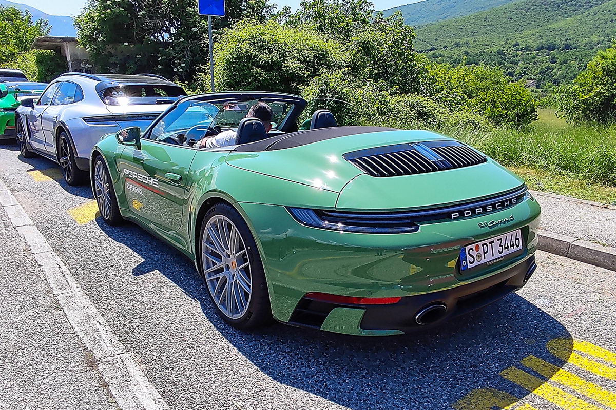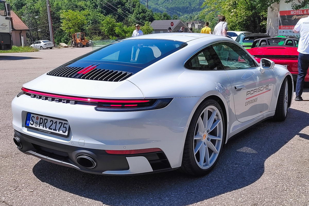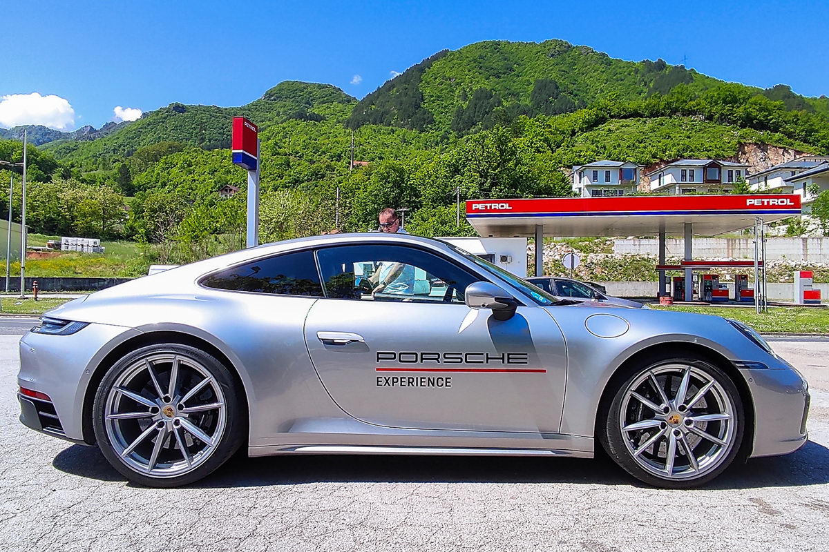 PORSCHE Carrera 911 4S uvijek privlači veliko interesovanje pa smo cjelodnevnu vožnju i započeli sa modelom Carrera 4S koji je i jedan od favorita kada bi i sam autor ovog teksta kupovao neki od 911 modela. Njegova natprosječna snaga od 450 KS i 530 Nm okretnog momenta koja dolazi iz šestocilindarskog motora isporučuje se preko poznatog 8-stepenog PDK automatskog mjenjača. Uz pogon na sva četiri točka snaga se idealno prenosi na podlogu pa se od 0 do 100 km/h ispaljuje za 3,7 (3,5 Sport Chrono Package) sekundi te postiže maksimalnu brzinu od 308 km/h. Linearna isporuka snage, fantastični zvuk i upravljivost, lahko će vas odvesti u sferu poigravanja ss velikim brzinama i peglanja zavoja.