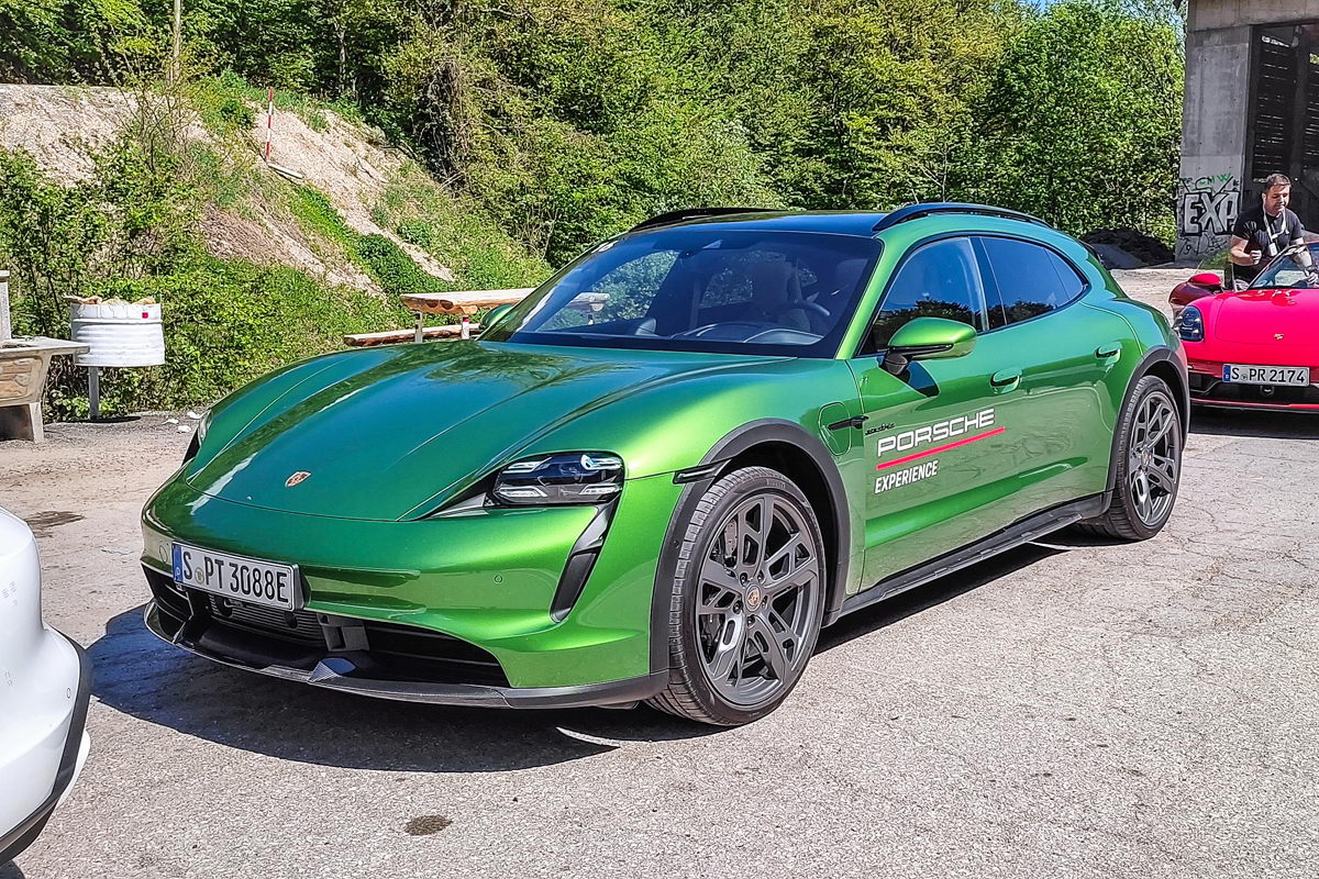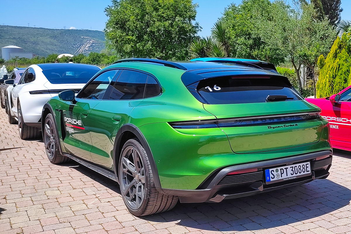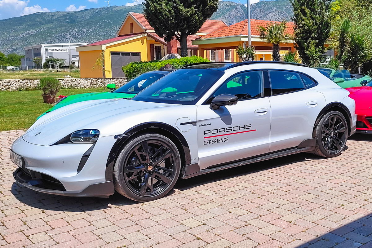 Električnu vozačku priču na ovogodišnjem događaju započeli smo sa modelom Taycan Turbo S Cross Turismo u atraktivnoj “Mamba Green” metalik boji. Ova varijanta Taycan modela namijenjena je ljudima koji žele kombinovati svakodnevnu upotrebljivost modela Taycan Cross Turismo sa cestovnom dinamikom Taycan sportske limuzine. Pokreću ga električni motori ukupne snage 680 KS, ali u “overboost” funkciji oslobađa još dodatne snage, pa u konačnici na točkovima imate čak 761 KS i 1.050 Nm okretnog momenta. To je sasvim dovoljno snage da se automobil katapultira od 0 do 100 km/h za 2,7 sekundi. Kada pritisnete papučicu gasa do poda “zelena mamba” doslovno će vas zalijepiti za sjedište, pa ćete steći veoma sličan osjeća koji imate pri polijetanju mlaznim avionom.