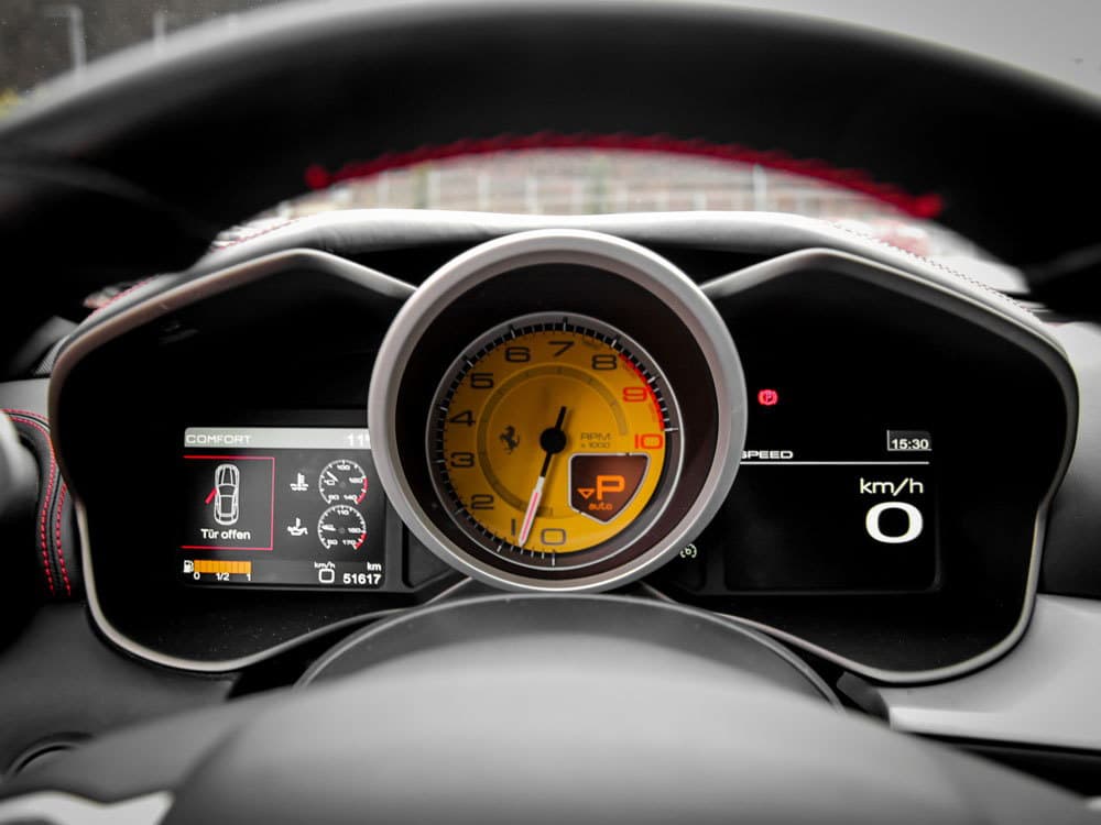 Položaj sjedenja je vrlo nizak pri čemu je tijelo u položaju koji je vrlo je sličan položaju u kojem se nalazi vozač F1 bolida. Ferrari to uvijek ističe, da u svoje modele želi prenijeti što više F1 iskustva koje decenijama uspješno stiče.