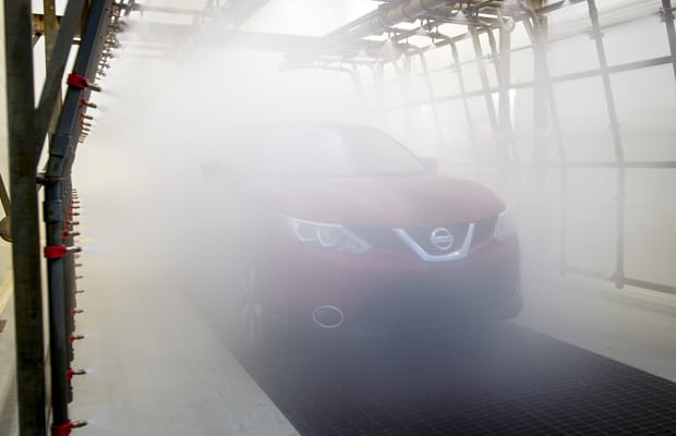 Svaki novi crossover je podvrgnut „testiranju u perilici” tokom razvoja. Modeli Qashqai, Juke i X-Trail se prskaju s 24.000 litara vode i svaka se kap reciklira. Dodatnim testom uređajem za pranje pod velikim pritiskom osigurava se da u automobil ne prodire vlaga.
