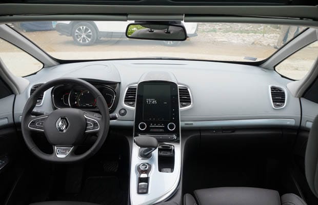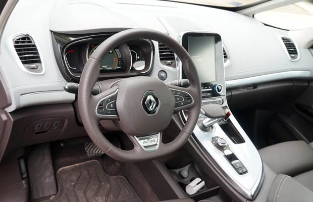 Kao i sve prethodne generacije kroz punih 30 godina, prostrana, modularna i osvjetljena unutrašnjost temeljni su elementi i kod pete generacije modela Espacea. Gostoljubivost u kabini novajlija pokazuje kroz vrhunsku modularnost sa pet i opciono sedam sjedišta, a posvećenost detaljima i nova plutajuća konzola mijenjaju njegov karakter. Dva dodatna preklopiva sjedišta u trećem redu, dostupna su na svim razinama opreme uz doplatu od 1.984 KM. Kod verzije Initiale Paris postoji mogućnost podešavanja sjedišta u 10 smjerova, što vozaču i suvozaču nudi pronalaženje idealnog položaja, dok sistem R-Link 2 omogućava memorisanje do šest položaja.