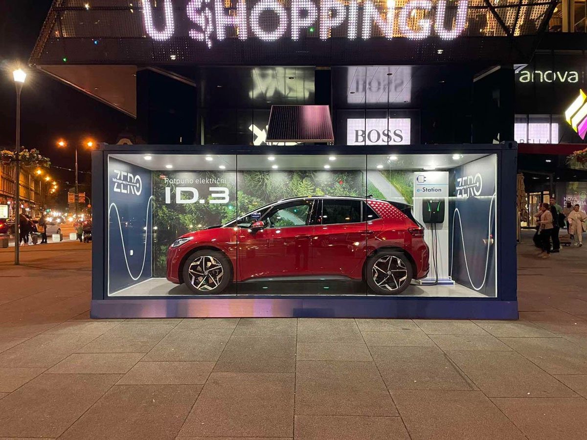 Model ID3 će od 29.9.-3.10.2021 biti izložen ispred BBI centra, a građani Sarajeva se putem QR code-a koji je istaknut na vanjskoj strani izložbenog kontejnera mogu prijaviti na testnu vožnju. Unutar e-kontejnera instaliran je i mobilni „Moon“ punjač kakav se koristi za električno napajanje ovih vozila.