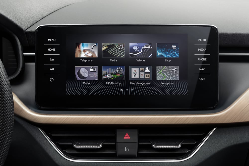Novi koncept interijera kod SCALA modela uključuje najmoderniju digitalnu tehnologiju, kao i inovativne aplikacije i mobilne usluge. Opcioni virtuelni kokpit dolazi u veličini od 9,2 ili 10,25 inča na kojima se može konfigurisati prikaz informacija po želji vozača. Ekran vrhunskog Amundsen infotainment sistema među najvećim je ekranima u segmentu kompaktnih automobila.