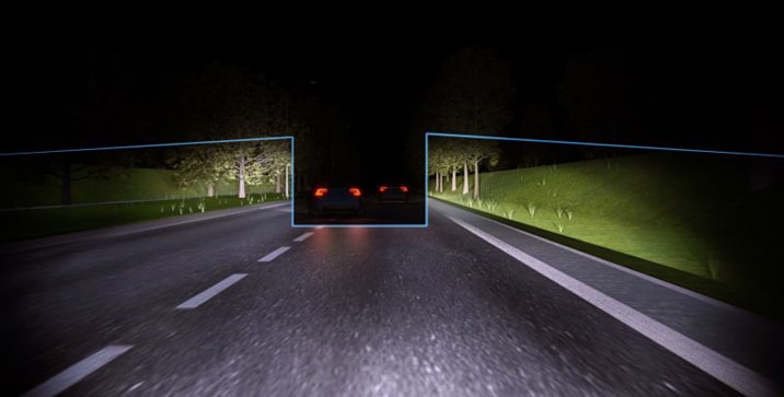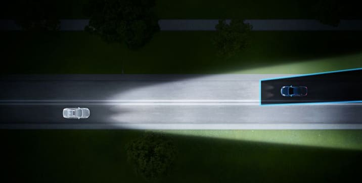 Prilikom nailaska vozila iz suprotnog smjera ili sustizanja vozila ispred, sistem pomaže u sprječavanju zasljepljivanja, tako što precizno zasjenjuje svjetlosni snop.