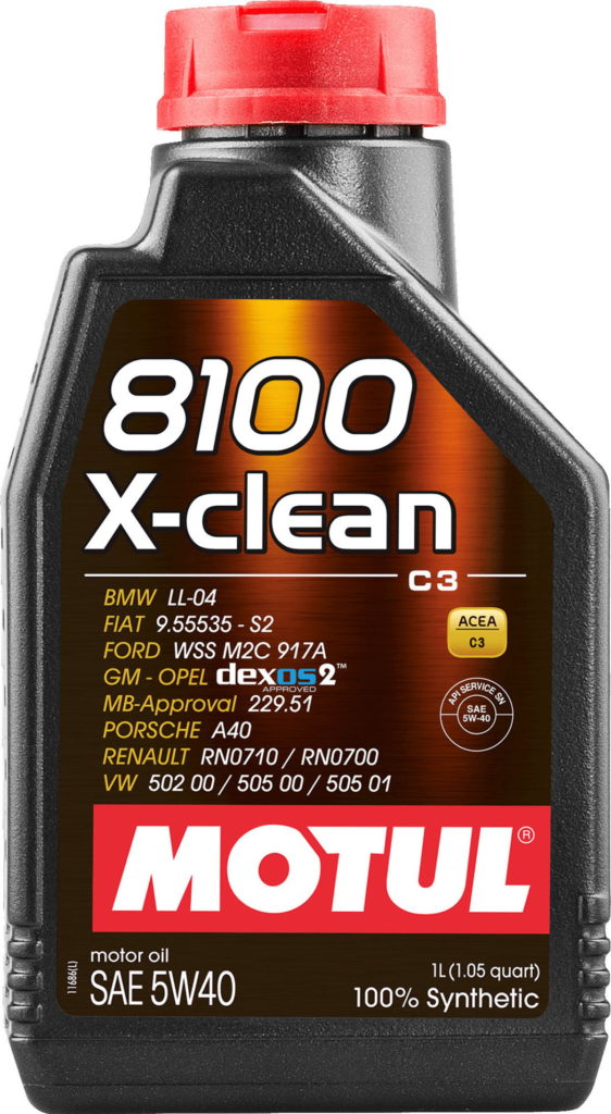 Motul 8100 X-clean 5W40Potpuno 100% sintetičko motorno ulje za automobile najnovije generacije. Odgovara za turbo dizel motore s direktnim ubrizgavanjem (common-rail ili “pumpa-dizna” sistem) ili benzinske motore norme EURO 4 ili EURO 5 koji zahtevaju ACEA C3. Standardi: ACEA C3, API SN/CF |