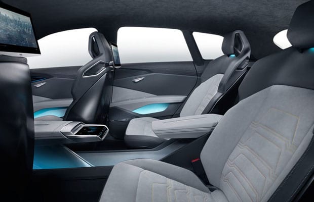 U putničkoj kabini dominiraju tri nova OLED ekrana, a koje koristiti naredna generacija Audija A8. Sjedišta su u konfiguraciji 2+2, te cjelokupni dizajn unutrašnjosti sličan je Audi Prologue konceptu.