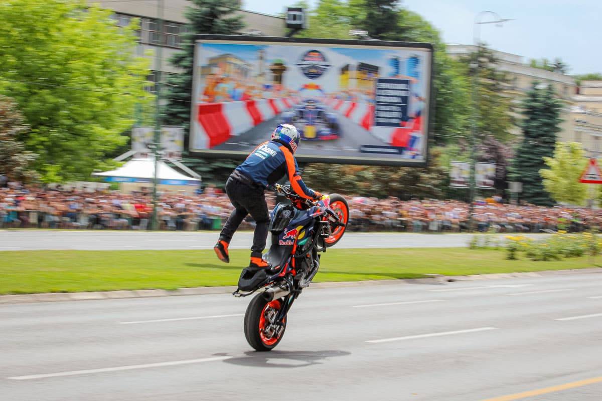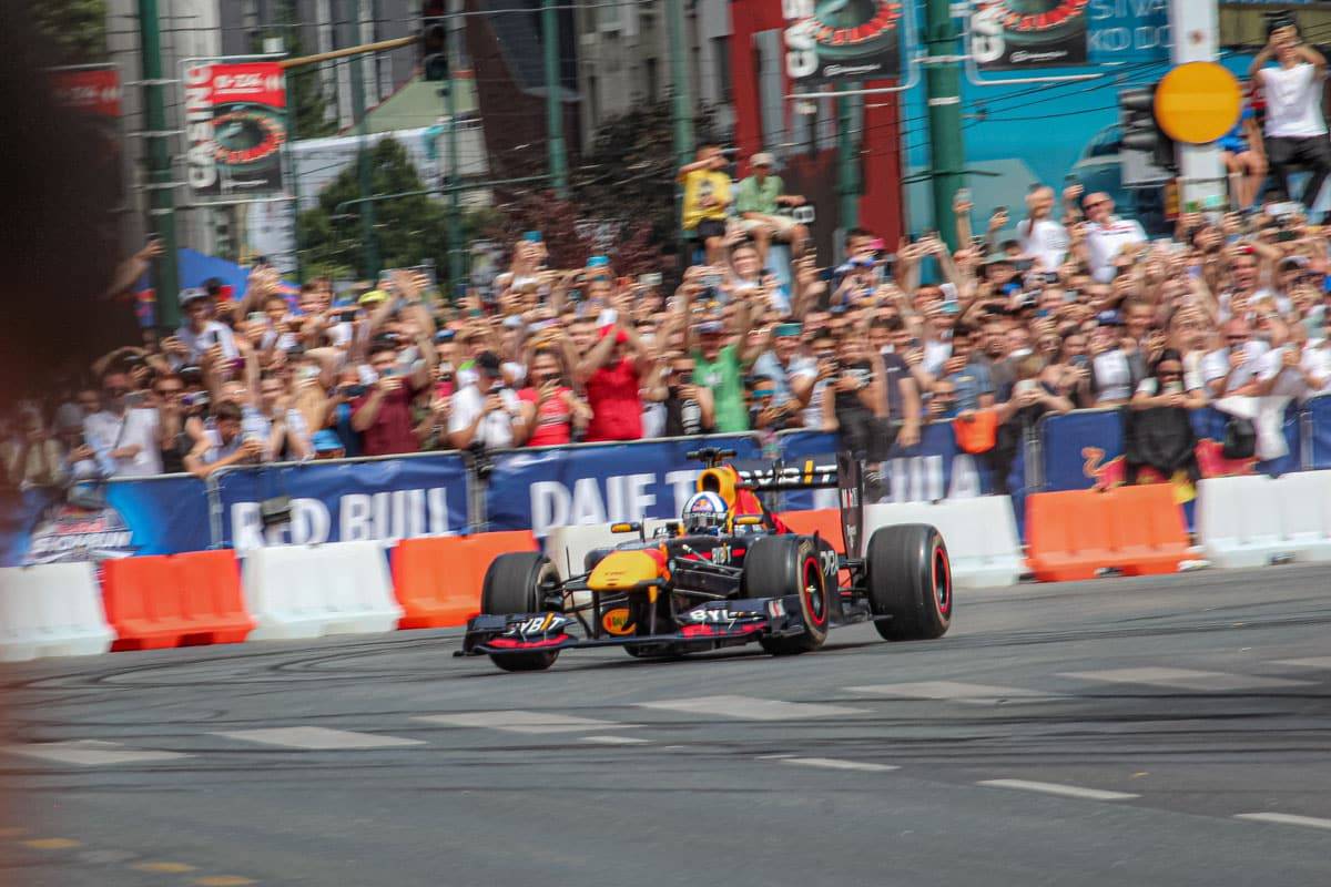 Arunas Gibiež na KTM motociklu i “Red Bull Driftbrothers” drift dvojaca samo su zagrijali atmosferu za spektakl koji je napravio slavni vozač Formule 1 David Coulthard sa šampionskim Red Bull F1 RB7 bolidom. Ovaj bolid je, slobodno možemo reći, iz ere pravih bolida koji su svojim gromovski zvukom publiku dovodili u ekstazu za razliku od današnjih V6 hibridnih bolida koji nisu ni blijeda sjena. To je jedan od glavnih razloga zbog čega je ovaj bolid poseban, a ne treba zaboraviti činjenicu da je Sebastian Vettel za njegovim upravljačem osvojio titulu šampiona Formule 1 2011. godine u Japanu.