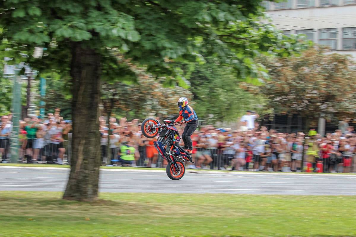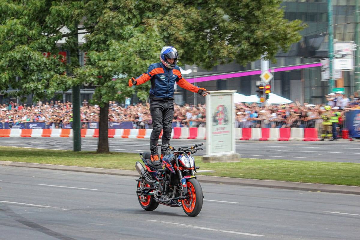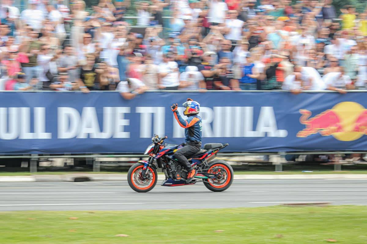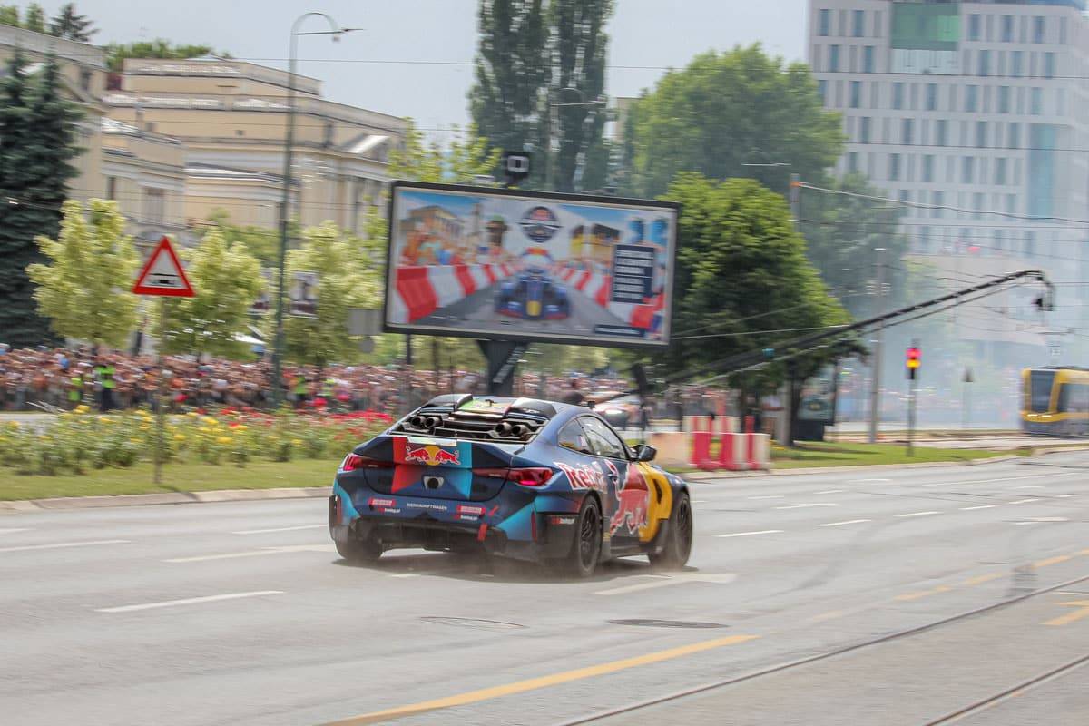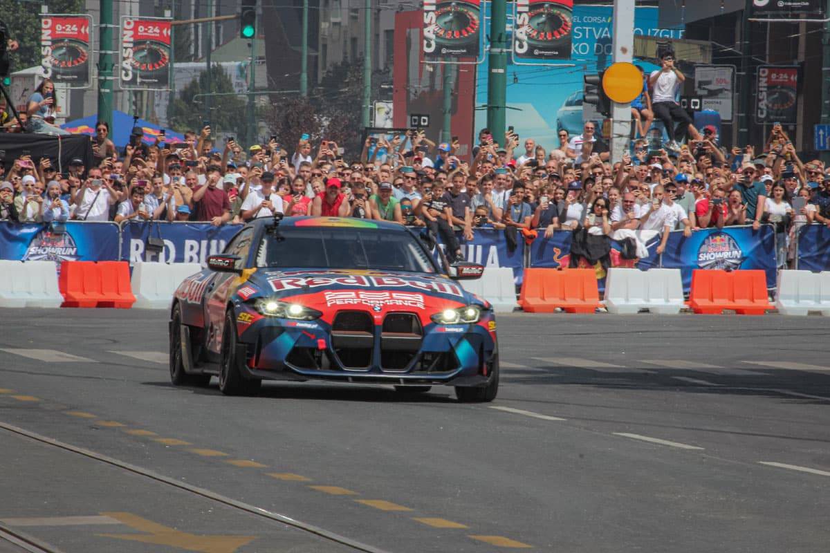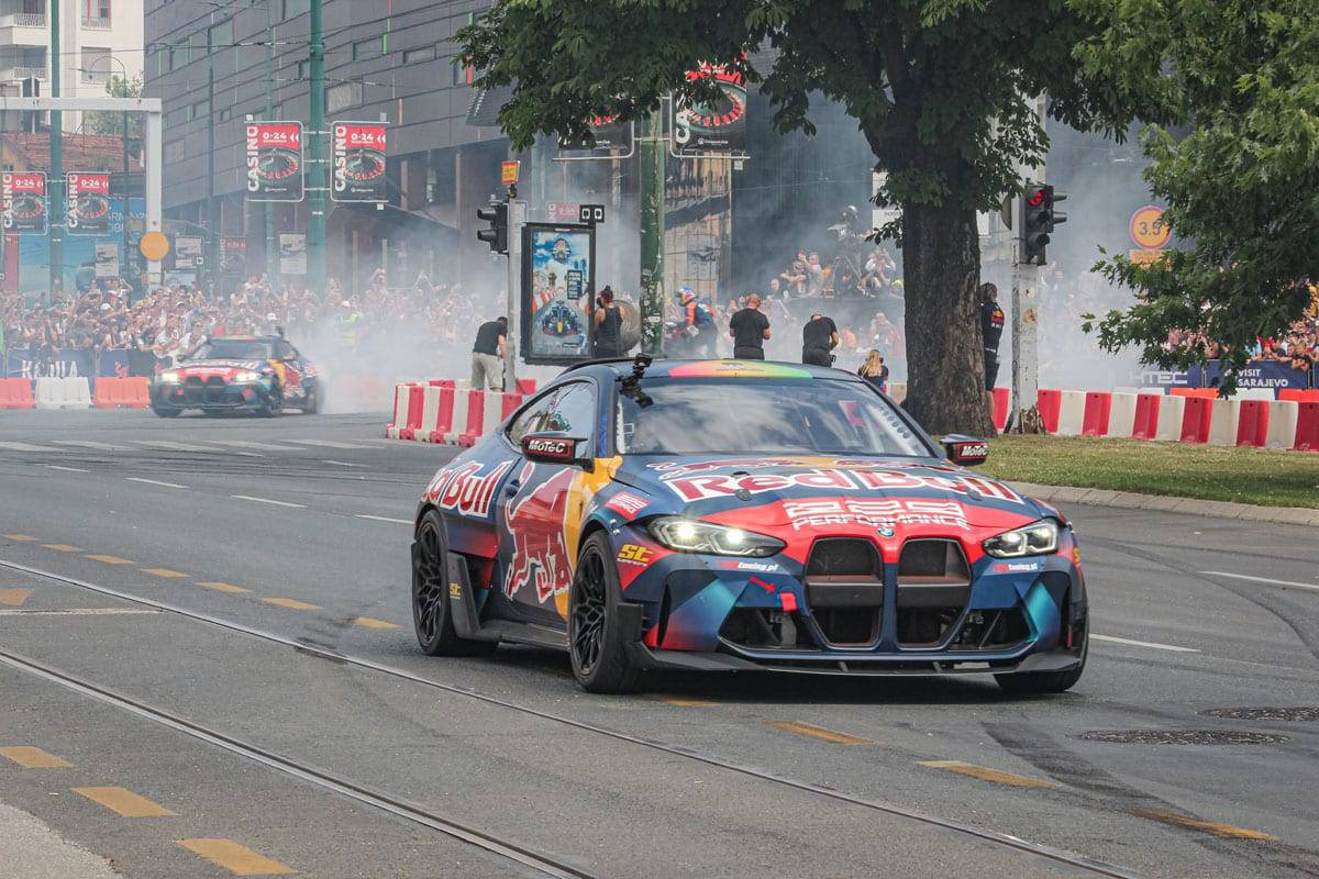 Red Bull Showrun je automobilistički spektakl u kojem profesionalni vozači sa velikim iskustvom pokazuju vještine vožnje i monstruoznu snagu mašina koje voze. Njihova vožnja ponekad izgleda kao opuštajuća balada kada zagrijavaju gume, a potom postaje pravi “hard rock” u kojem pucaju bubnjići dok se okolinom širi miris spaljenih guma! Uz gromoglasne ovacije publike danas su Sarajevom odjekivali zvuci KTM Super Duke 890 R motocikla, preuređenih BMW M4 modela sa 1000 KS i Red Bull RB7 bolida sa atmosferskim V8 motorom.