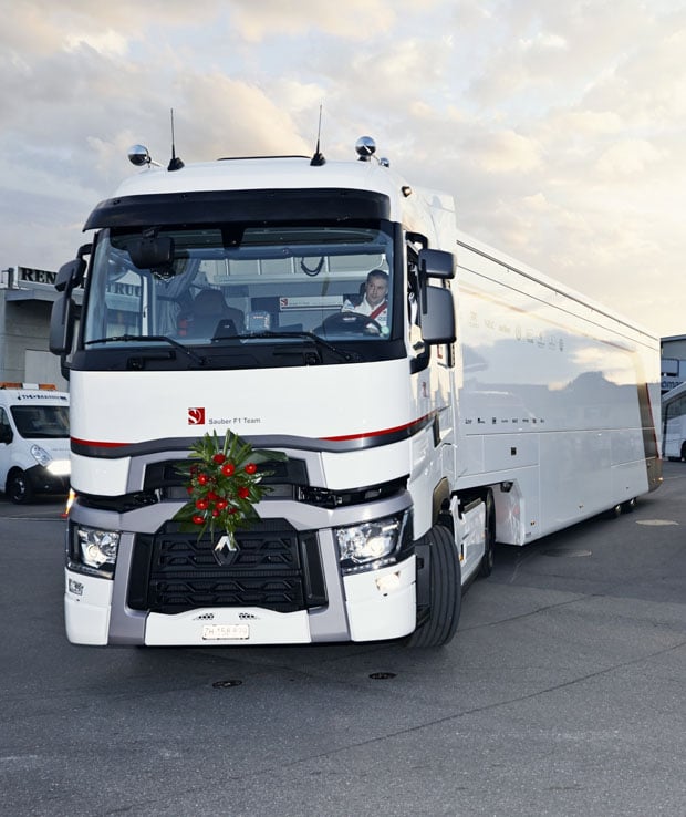 Ekipa Sauber F1 Teama koristit će vozila za prevoz osoblja i opreme na sve evropske Grand Prix utrke. Njihov vozni park sada ima ukupno 14 Renault Trucks kamiona za dugolinijski prevoz i 12 lakih komercijalnih vozila.