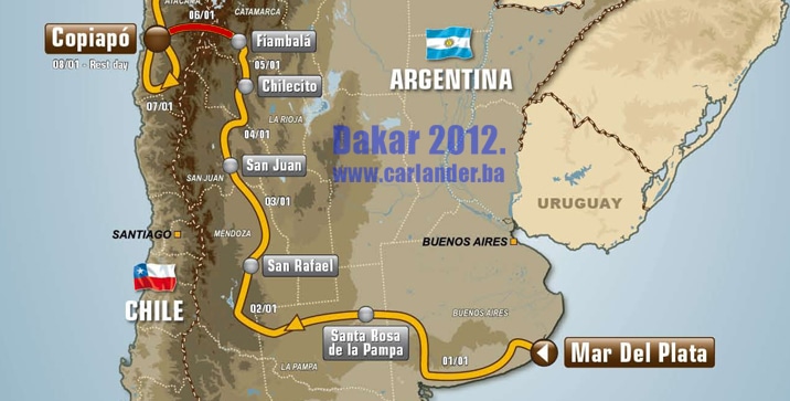 Šesta etapa dakarskog rellya otkazana je zbog loših vremenskih uvjeta u Andama. Ovom etapom trebalo se preći iz Argentine u Čile. Za danas bila je planirana ruta vožnje od Fiambala do Copiapo. Takmičari su trebali prijeći iz Argentine u Čile preko planinskog prijevoja Paso de San Francisco. Zbog subog kiše i snijega koji pada na tom dijelu današnje rute i zbog sigurnosti samih takmičara, otkazali etapu, pa će svi preko planine sutra prijeći u konvoju. Zbog ovog otkazivanja bit će izmijenjen nastavka utrke.