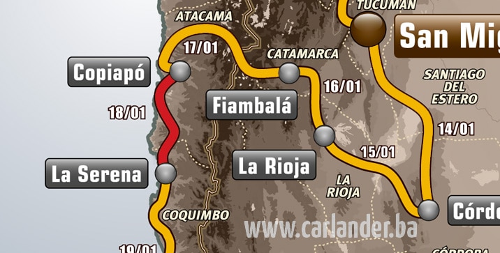 Posljednja 14. etapa vozi se od La Serene do Santiagoa u dužini od 346 kilometara.