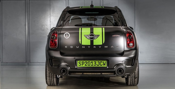 Ovaj model Countrymana ima i mat crni eksterijer, zelene trake na haubi, krovu, vratima prtljažnika i na bokovima, kao i 19 inčni Cross-Spoke Crusher aluminijumske točkove, te Peterhanselov potpis na haubi i broj njegovog automobila na vratima.