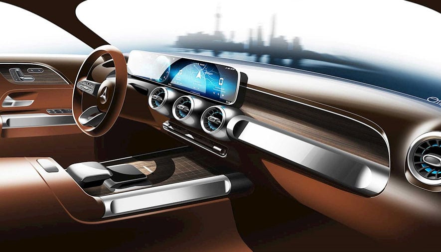 Prije samog predstavljanja GLB koncepta Mercedes je objavio zvanični crtež unutrašnjosti automobila koja je jako slična aktuelnoj A i B-klasi. Iza kola upravljača nalaze se dva dobro nam poznata velika ekrana spojena u jednu cjelinu. Na sredini centralne konzole tu su atraktivni okrugli ventilacijski otvori koji su postali zaštitni znak Mercedesa.