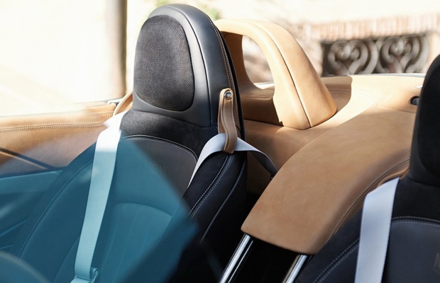 Minimalistička kabina elegantno je opremljena premium kožnim tapacirungom, digitalnom instrument tablom i aluminijumom prekrivenom komandnom tablom. Vozilo posjeduje trokraki točak upravljača, analogni sat i Union Jack inspirisane strukturne elemente na vratima.