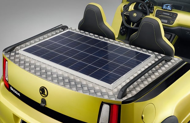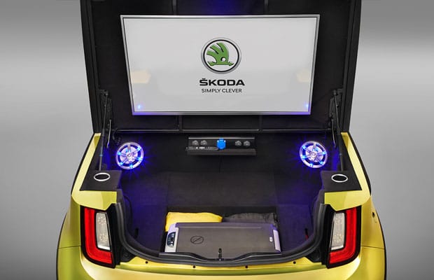 Navigacioni sistem Navigon je ugrađen u posebnu pregradu i izgleda kao da je postavljen iznad kontrolnog sistema za klima uređaj. Najupečatljiviji detalji su postavljeni u zadnjem dijelu automobila, u dijelu gdje su kod modela Škoda Citigo postavljena zadnja sjedišta – solarna ploča i Smart TV koji se sa pametnim telefonom mogu povezati putem Bluetooth konekcije.