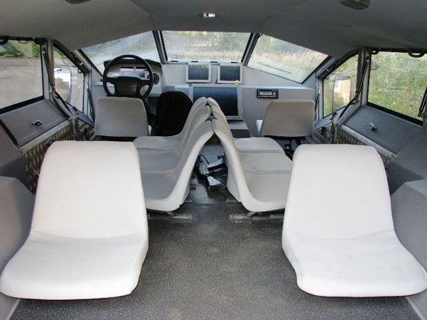 Tako je nastao unutrašnji raspored sjedišta: iza vozača i suvozača postavljena su dva uzdužna reda sa po 3 sjedišta, dok su još 2 stražnja sjedišta okrenuta unatrag, kako bi imali bolji pregled i mogućnost odbrane stražnjeg dijela vozila.