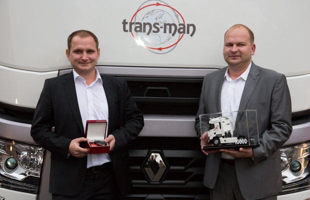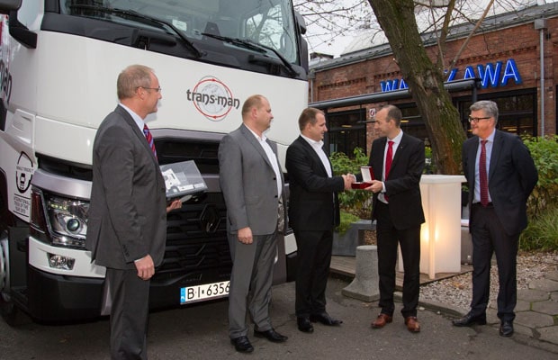 Na prigodnoj svečanosti u centru Varšave, Renault-ovi zvaničnici su vlasnicima poljske transportno-logističke kompanije Trans-Man uručili ključeve desetohiljaditog kamiona iz nove game T. Simbolično, ključeve je predao direktor prodaje Renault Trucks za region EMEA, Olivier de Saint-Meleuc, a preuzeli su ih suvlasnici kompanije Trans-Man, braća Krzysztof i Grzegorz Mancewicz.