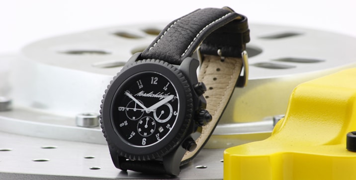 Težak 144 grama u metalanom kućištu u mat crnojboji: ekskluzivni Nordschleife ® kronograf sada je dostupan za ljubitelje najzahtjevnije staze. Sat je proizveden u Njemačkoj, a odmah privlači pažnju svojom upečatljivim izrazito muškim dizajnom. Robustan u XXL veličini izrađen od nehrđajućeg čelika, promjera od 50 milimetara obojen je u mat crnu boju.