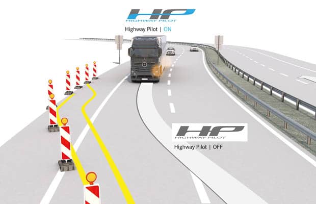 Highway Pilot ne zamjenjuje vozača, ali smanjuje i ublažava stres i opterećenja, na monotonim dionicama i tokom vožnje u saobraćajnoj gužvi. U automatskom režimu vozač u svakom trenutku može ponovo preuzeti kontrolu vozila. U slučajevima kada minimalne pretpostavke za sistem nisu prisutne zbog lošeg vremena, ili nedostaju oznake na putu, Highway Pilot izdaje akustični i vizualni signal, kojim upućuje vozača da preuzme kontrolu. Vozač ima dovoljno vremena da preuzme zadatak vožnje. U slučaju da izostane reakcija vozača, kamion se samostalno i sigurno zaustavlja.