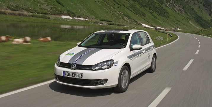 Volkswagenov Golf  Blue-e.Motion, automobil s čisto električnim pogonom, ima domet do 150 kilometara i maksimalnu brzinu od 135 km/h. Kapacitet njegove litij-ionske baterije iznosi 26,5 kWh.  Ovaj automobil nudi tri  različita stepena rekuperacije, dok je sa 270 Nm obrtnog momenta perfektno rješenje za vožnju bez CO2-emisija u gradskim i industrijskim zonama. Trenutno su  u berlinskom projektu „Plus-energy-house“ angažovna još dva Golfa Blue-e-Motion. Do kraja godine planirana je  probna vožnja flote od 60 vozila, kroz Austriju, Belgiju, Francusku i SAD.