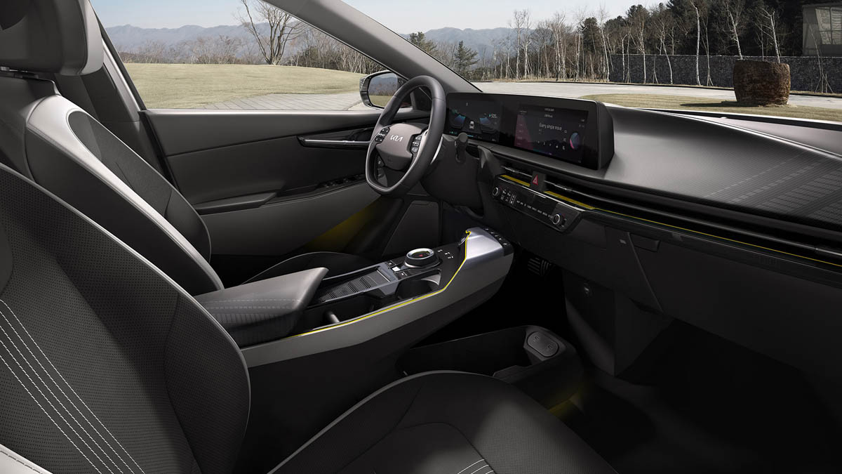 Dizajn unutrašnjosti karakterističan za EV doba maksimalno koristi prednosti Kijine namjenske E-GMP platforme. Uprkos kompaktnim vanjskim dimenzijama 2.900 milimetara dug međuosovinski razmak u kabini pruža puno prostora kao što ga nude srednje veliki sportski terenci.