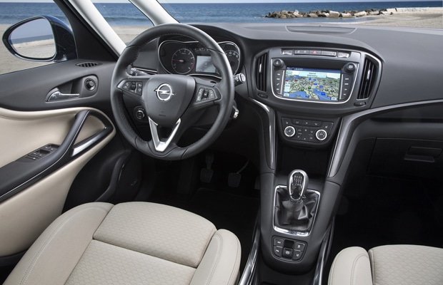 Iznutra nova Zafira dolazi s posve redizajniranim kokpitom koji sada krasi jednostavniji i elegantniji raspored. Novi dizajn optimizira vidljivost ispred vozila, ali i osigurava da se zaslon i sve kontrole nalaze u optimalnoj zoni za dohvaćanje. Ekran informacijsko-multimedijskog uređaja koji je prije bio na vrhu centralne konzole sada je zamijenjen novim, nižim i integriranim dodirnim zaslonom, što je omogućilo uklanjanje brojnih prekidača. Prekidači su sada precizno integrirani u cjelokupan dizajn. Novi napredniji sistemi dodirnog zaslona dijagonale 7 inča uokvireni su galvaniziranim obrubom u obliku slova „u“, a njihova je izrada inspirirana kvalitetom tableta s vrha ponude. Novi trodimenzionalno oblikovan upravljač s malim i učinkovito smještenim poklopcem zračnog jastuka dizajniran je ne samo da bi lijepo izgledao, nego i stavlja ergonomiju u središte.