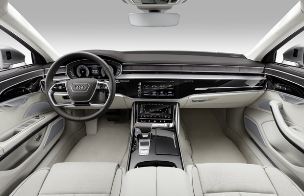 Unutrašnjost ove luksuzne limuzine namjerno koristi reducirani dizajn. Unutrašnja arhitektura je čista i sa strogo vodoravnom orijentacijom. Audi svoje standarde visoke kvalitete prenosi u digitalno doba sa radikalno novim konceptom upravljanja. Zamjenjuje poznatu rotirajuću tipku i touchpad prethodnog modela.