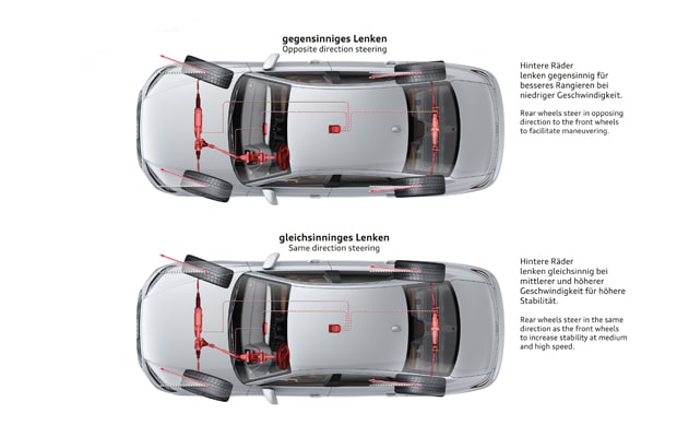 Prijenosni odnos sistema upravljanja prednjim točkovima mijenja se u ovisnosti o brzini, dok se stražnji točkovi okreću u jednakom ili obrnutom smjeru od prednjih točkova ovisno o rasponu brzine. Upravljanje automobilom postaje još dinamičnije i preciznije sa sportskim diferencijalom.