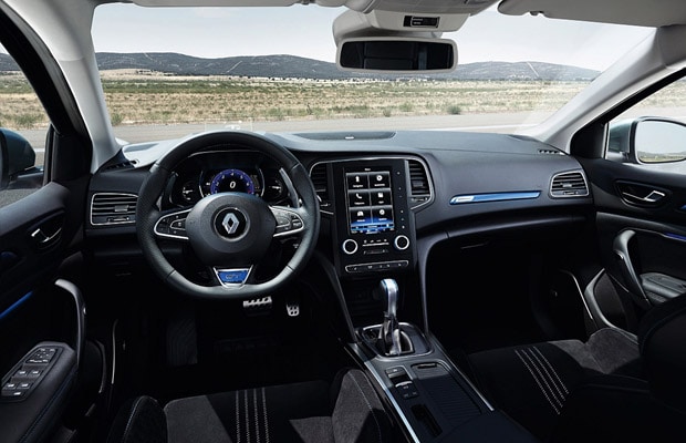 Unutrašnjost kod Novog Megana je kreirana s posebnom pažnjom na kvalitet završne obrade, kako bi se posebno istakao komfor pri putovanjima. Paket high-tech elemenata grupiranih i orijentisanih ka vozaču nastao je na ideji oblika slova L. Instrument ploča zasnovana je na 7-inčnom TFT ekranu, te uz kolor Head-Up display i ekran osjetljiv na dodir veličine 8,7 inča upotpunjen sistemom R-Link 2 razbija tradicionalnu rezervisanost za vozila više klase.