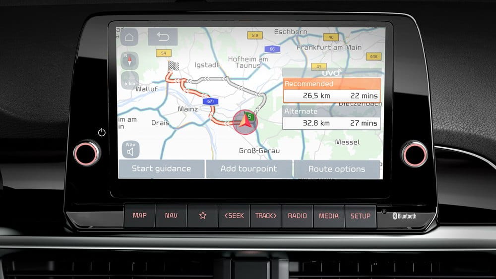 Picanto će dobiti veći, 8,0-inčni ‘plutajući’ zaslon na dodir s navigacijskim sistemom koji će zamijeniti stari sistem sa 7,0-inčnim zaslonom. Pored ovog donosi Bluetooth multikonekciju koji korisnicima omogućava povezivost dva mobilna uređaja istovremeno – jedan za telefoniranje bez ruku i upotrebu medija, a drugi samo za medije. Sistem standardno omogućava upotrebu na platformama Apple CarPlay i Android Auto.