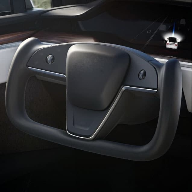 Možda najšokantnija novost jeste upravljač koji je inspirisan KITT-om. Ovaj nekonvencionalni upravljač kombinacija avionskog upravljača i klasičnog volana. Na ovaj način Tesla želi uvesti dizajnersku novinu, ali i jasno reći da svoj automobil smatra “avionom na točkovima”.