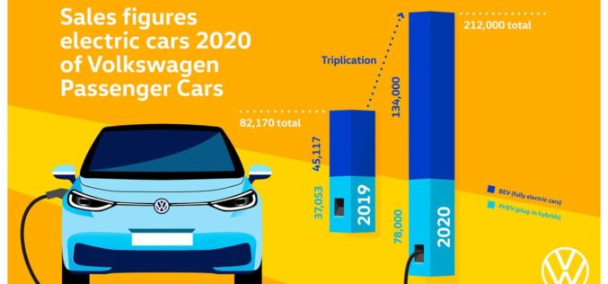 Volkswagen utrostručio isporuku električnih vozila u 2020. godini Volkswagen je utrostručio isporuku električnih vozila u 2020. godini čime je uhvatio zamah u svojoj prekretnici. Prošle godine Njemačka marka isporučila je