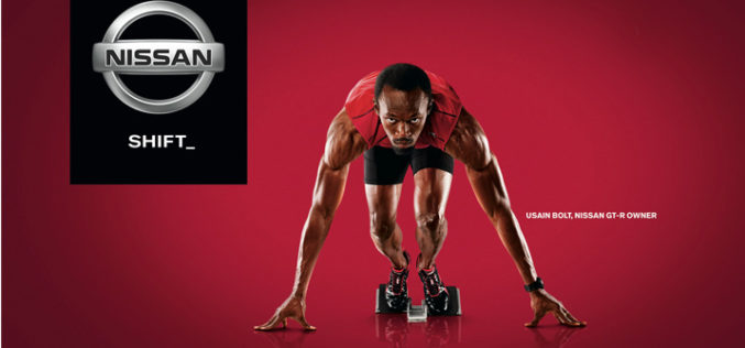 Usain Bolt Nissan GT-R reklamnoj kampanji Trostruki osvajač zlatnog olimpijskog odličja i trostruki svjetski rekorder Usain Bolt, može pretrčati stotinu metara za 9,58 sekundi. Saznao je da s Nissanom GT-R