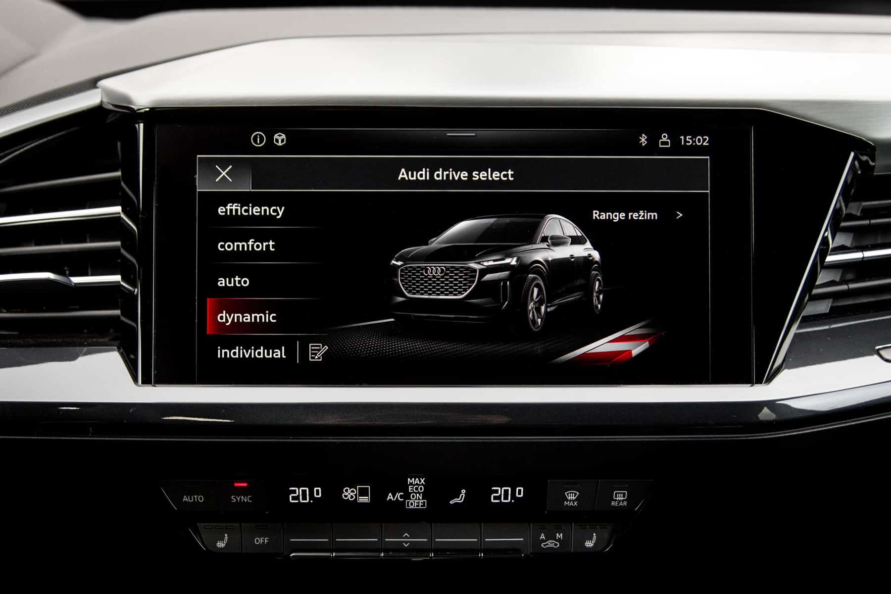 Sa svojim dimenzijama model Q4 Sportback e-tron tačno se smjestio između manjeg Q3 i većeg Q5 pa možemo reći da je ovaj model sa svojim dimenzijama optimalan za sve potrebe – od gradske svakodnevice do dalekih putovanja. Prostora na prednjim sjedištima ima u svim smjerovima i za najkorpulentnije putnike, a pomalo iznenađujuće, zadnja klupa također nudi dovoljno prostora za putnike jednake građe. Navikli smo da automobili sa spuštenom linijom krova nude manje mjesta za glavu putnika na zadnjoj klupi, međutim Q4 Sportback e-tron nije žrtvovao udobnost putnika za račun izgleda.