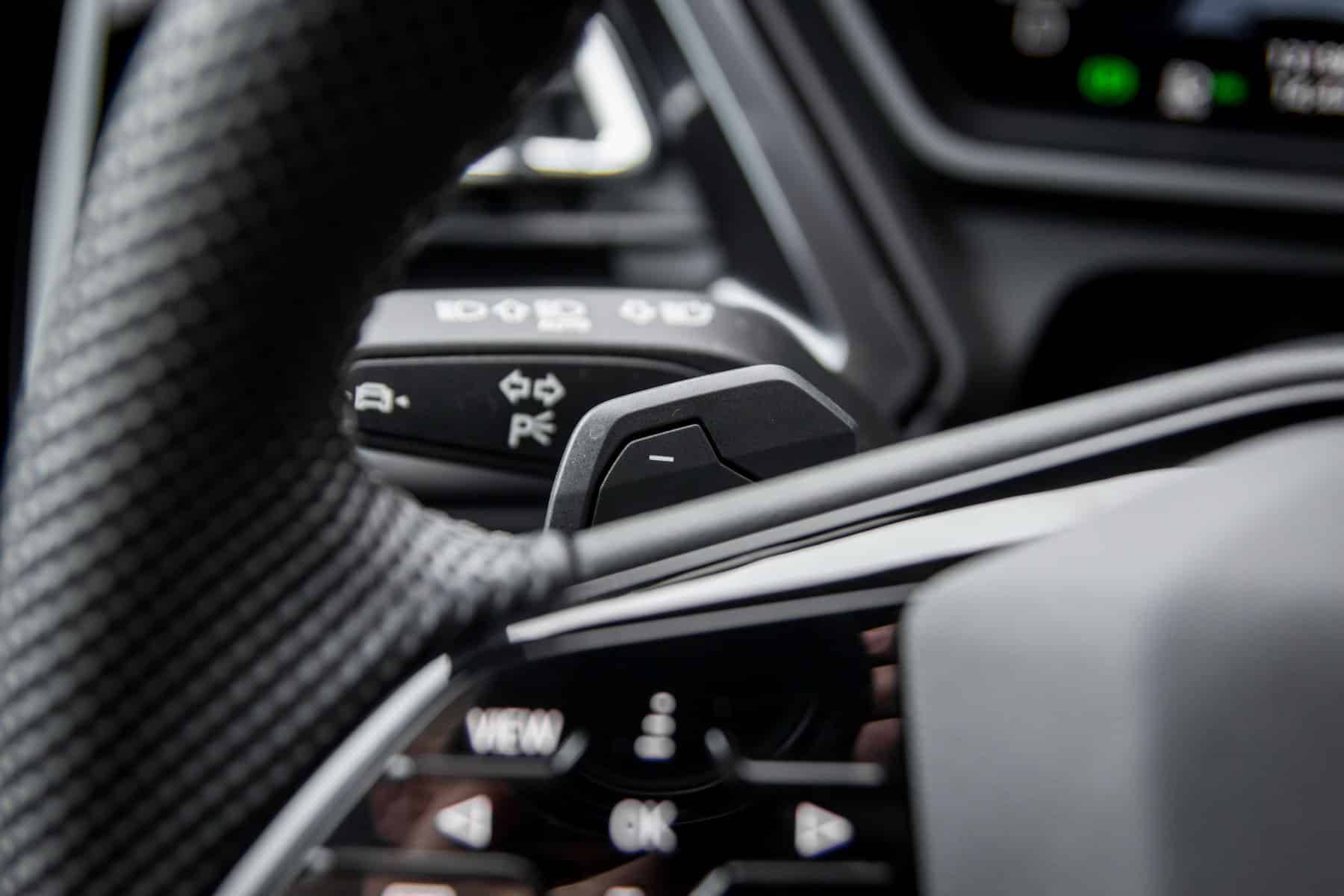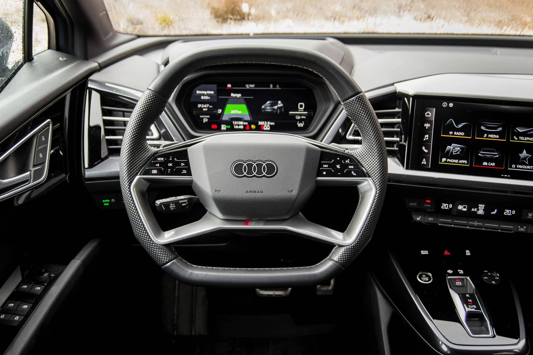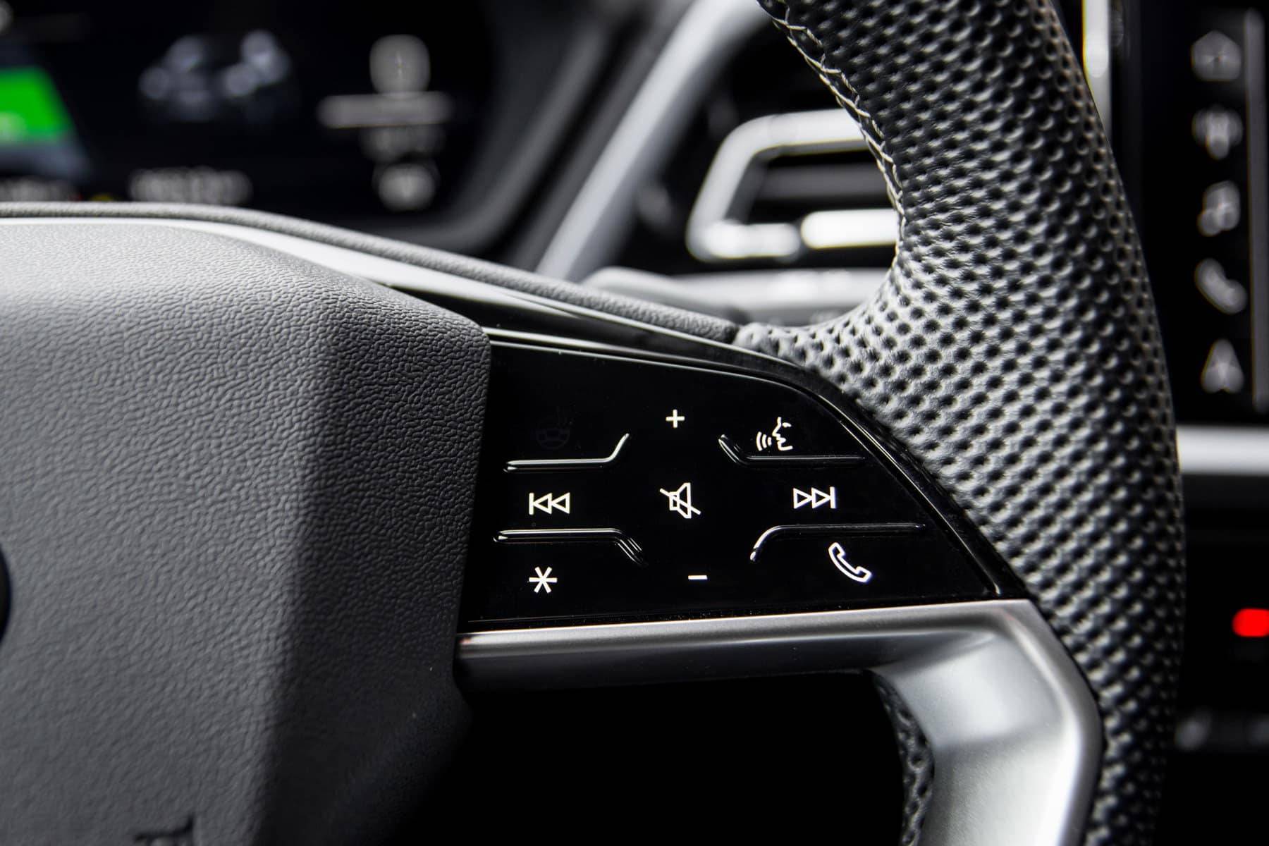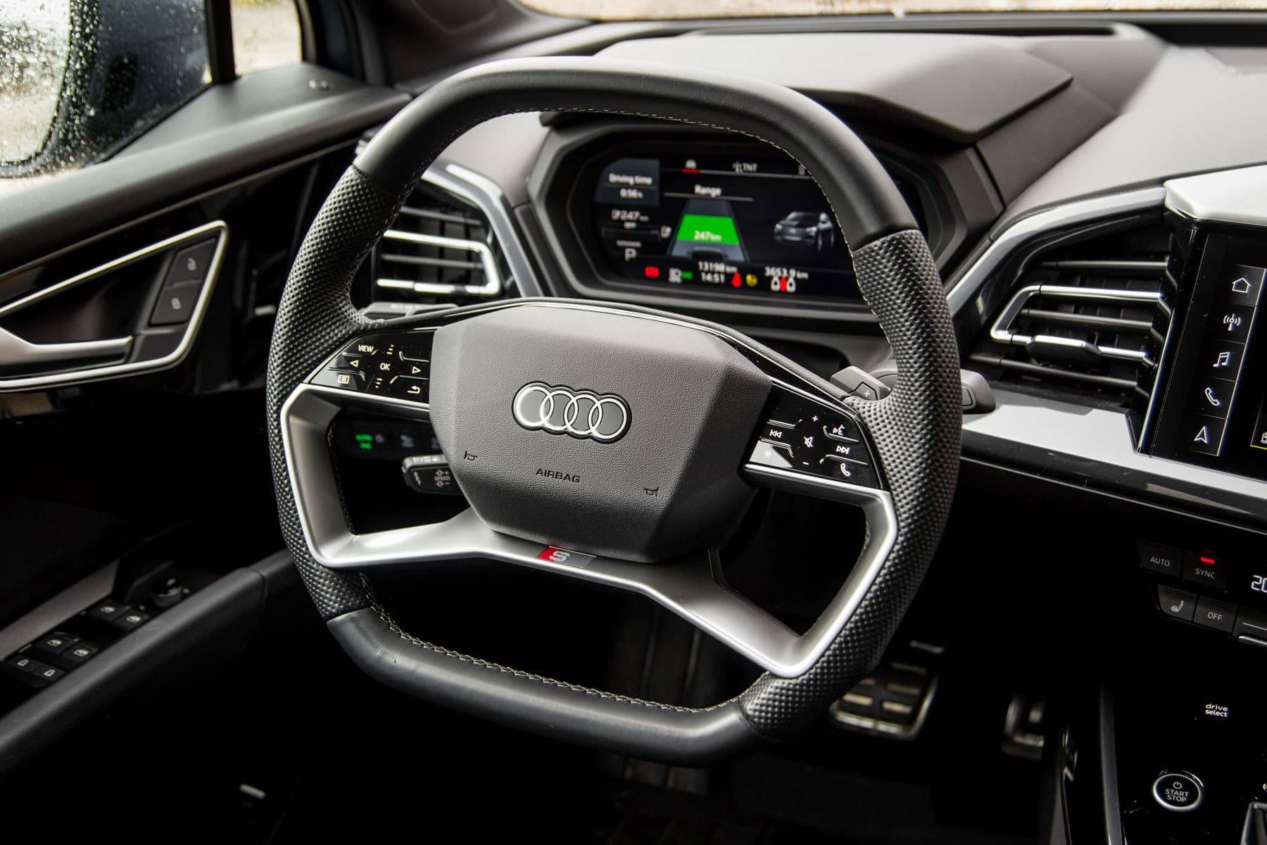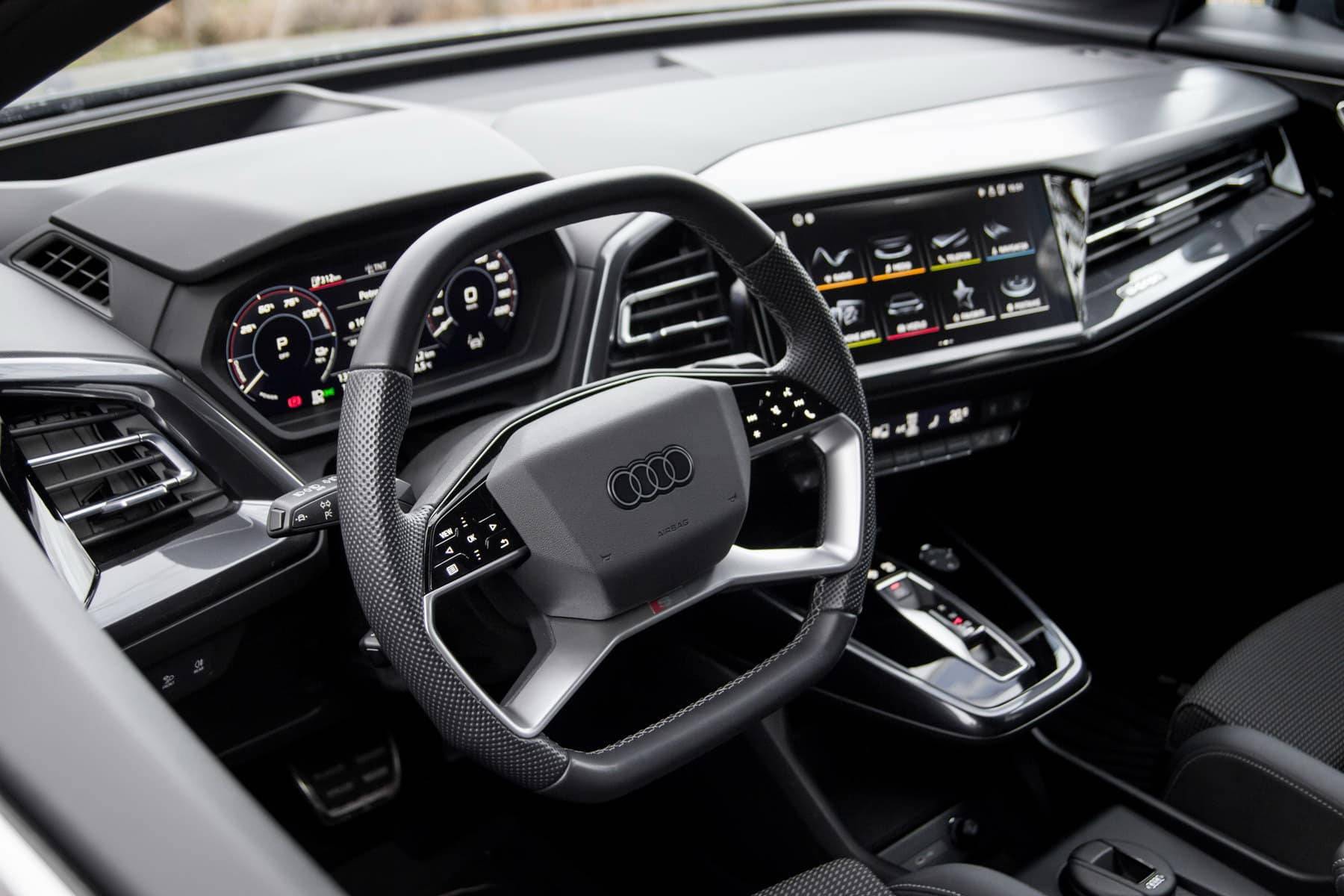 Upravljač je potpuno novog dizajna koji do sada nije viđen ni na jednom Audi modelu. Novi multifunkcionalni upravljač ima dodirne površine putem kojih vozač može upravljati digitalnim kombinovanim instrumentom kao i drugim sistemima poput audio uređaja ili putnog računara. Na upravljaču postoje papučice kao i kod modela sa motorima na fosilna goriva koje služe za promjenu stepena prijenosa, dok se kod modela Audi Q4 Sportback e-tron njima podešava intenzitet snage rekuperacija.