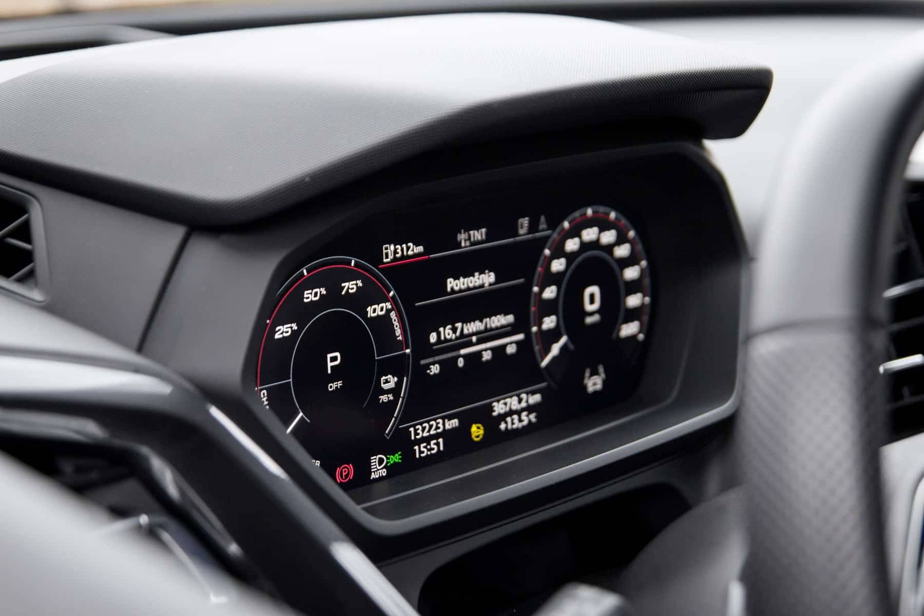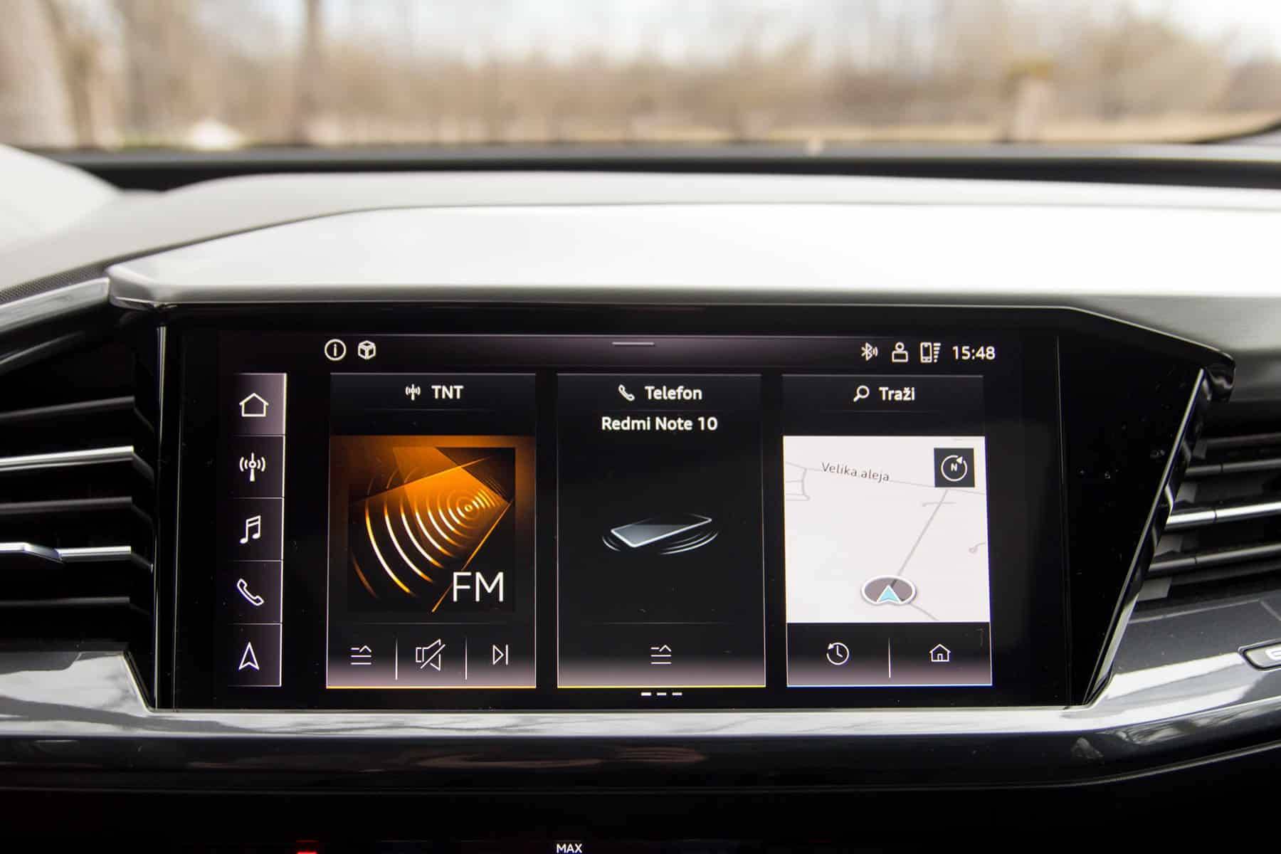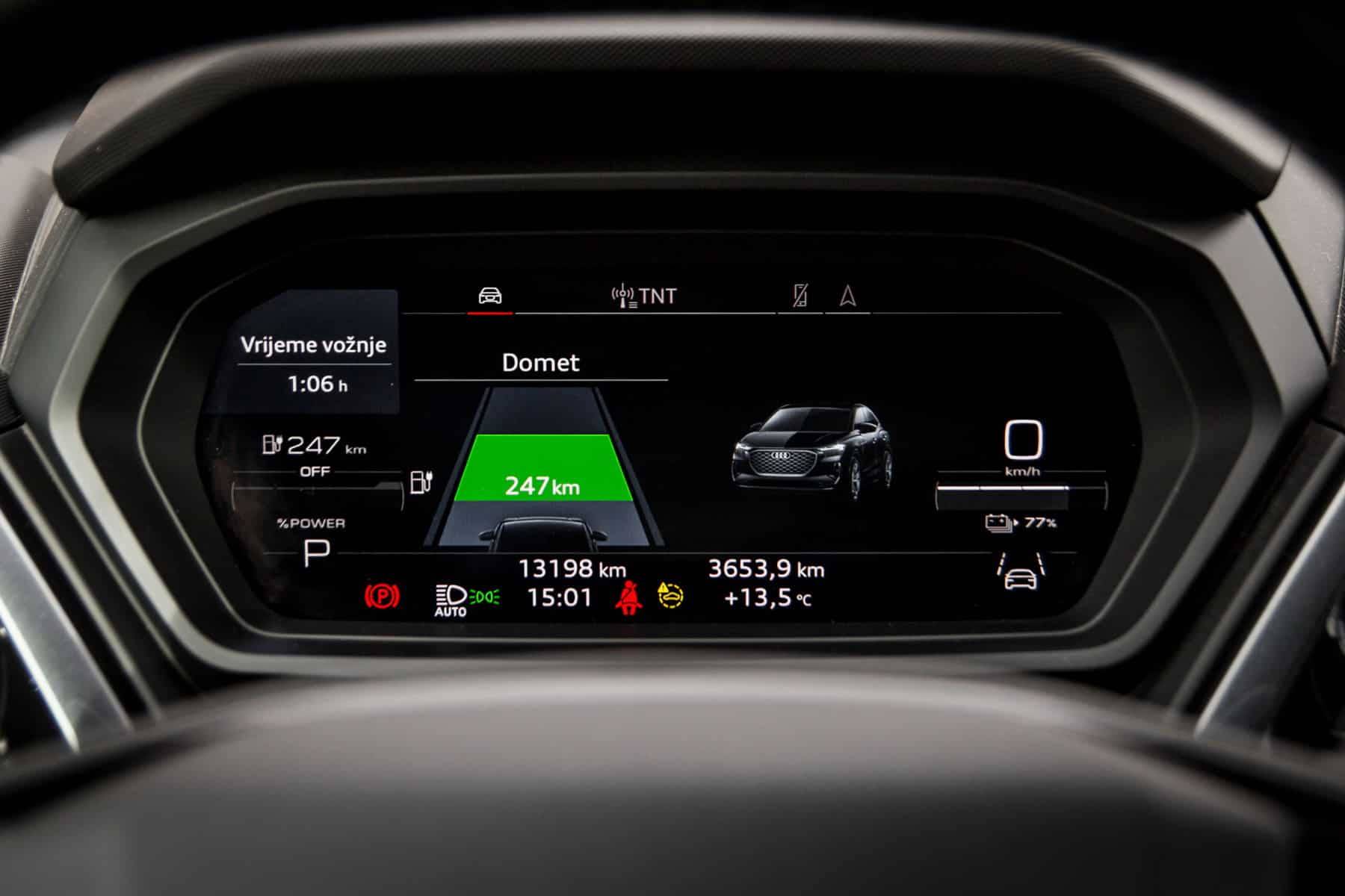 Virtual cockpit – digitalna instrument tabla na svom ekranu nudi pregršt putnih informacija, a grafički prikaz moguće je prilagoditi kroz nekoliko fabričkih profila. S druge strane grafika i okruženje centralnog ekrana opcione veličine 11,6 inča Infotainment sistema već je dobro poznata, pa ko je imao susret sa nekim od novijih Audi modela neće imati potrebu za privikavanjem. U svakom slučaju sve je vrlo jasno i jednostavno.