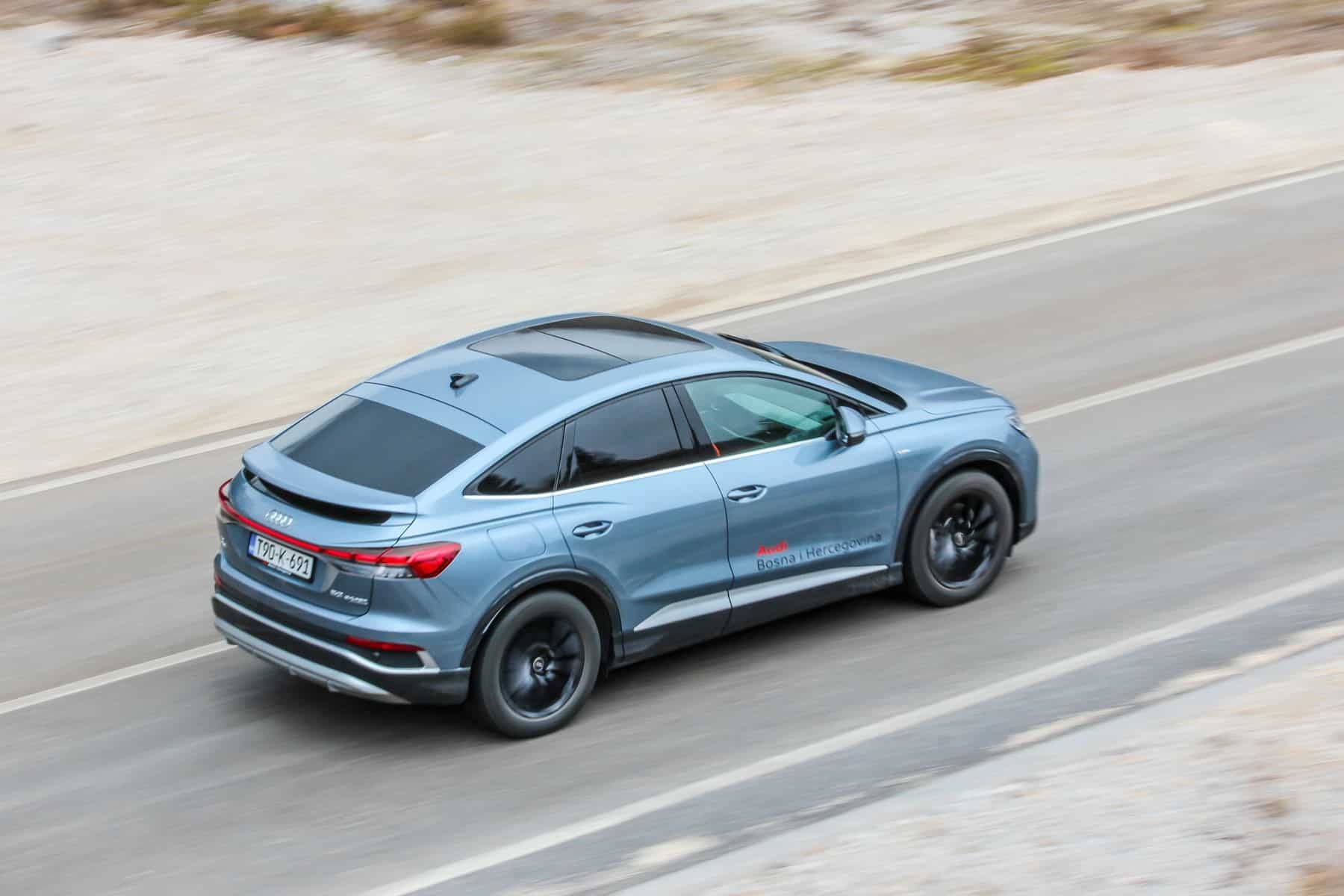 Audi Q4 Sportback e-tron je električni SUV koji se dovoljno ističe od svoje konkurencije sa svojim dizajnom i visokom tehnologijom. Ovaj model nameće se kao optimalno rješenje u brojnim segmentima i situacijama jer nudi dobru ravnotežu između performansi i dometa. Sa svojim kompaktnim dimenzijama nije preglomazan za svakodnevicu, a opet pruža dovoljno prostora za duga putovanja. Široka lepeza tehnoloških rješenja zadovoljava i najzahtjevnije kupce. U nastavku vam donosimo detaljan test ovog električnog modela.