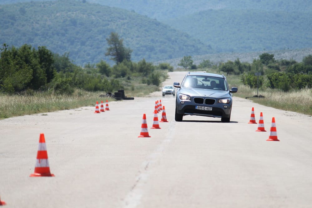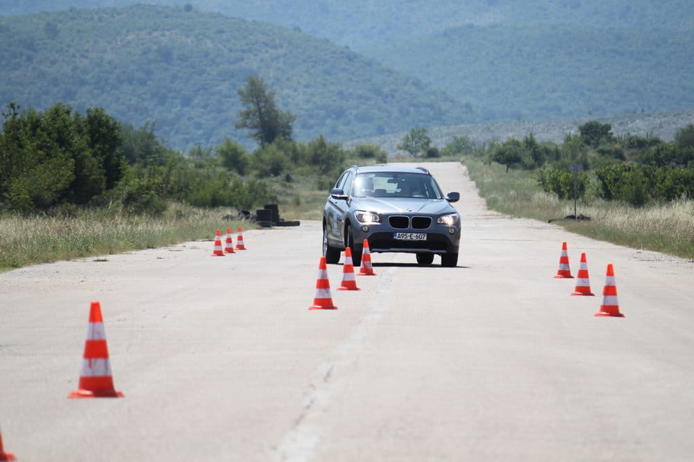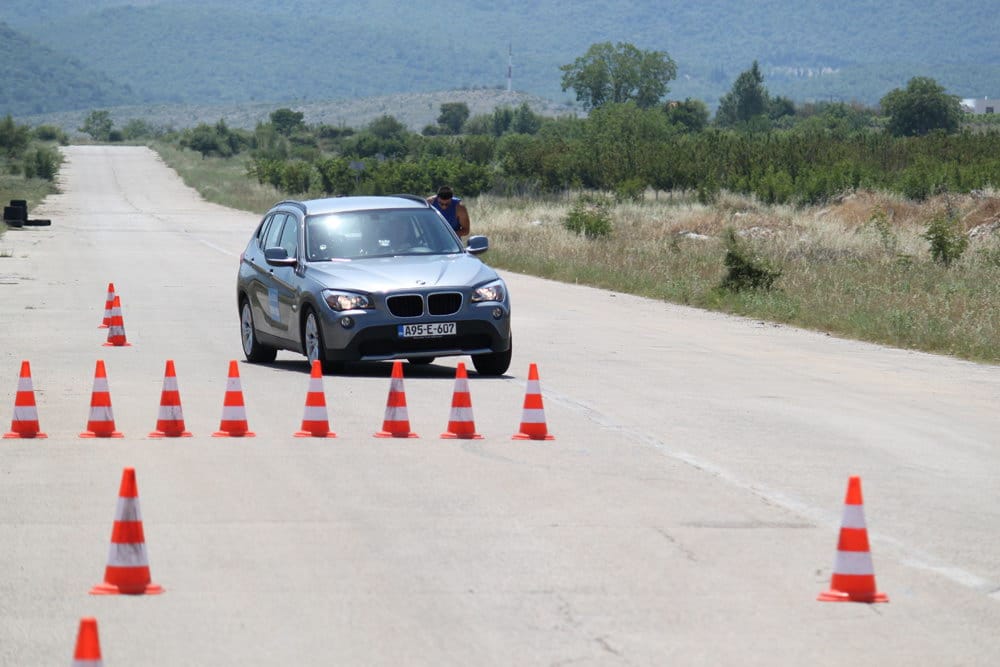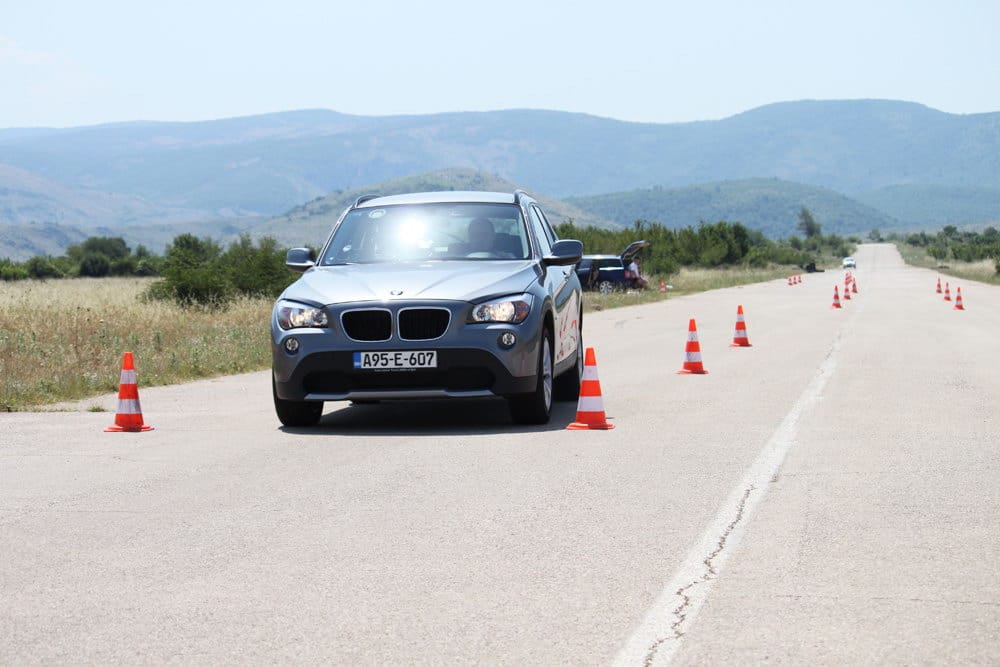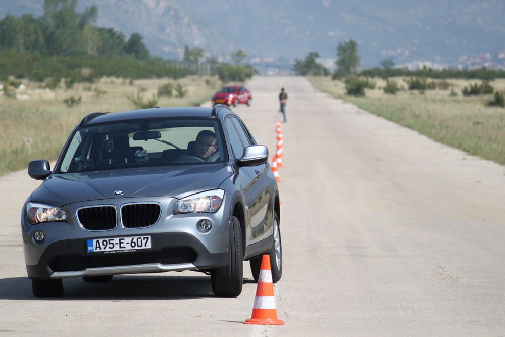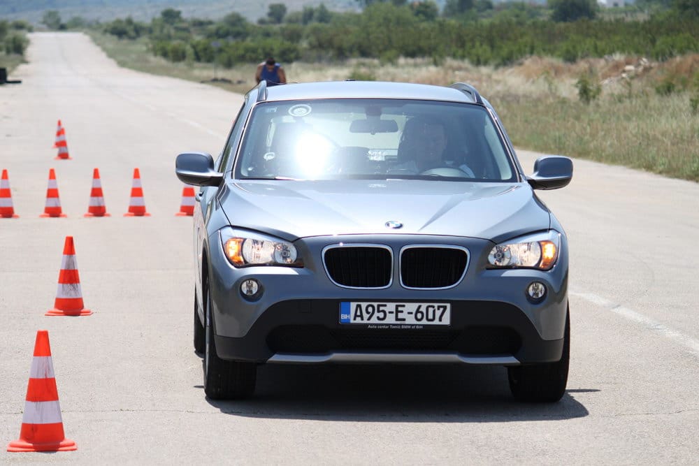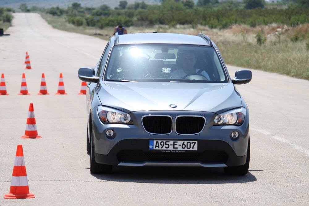 Iako se najniža tačka karoserije nalazi na 18 cm od tla, što X1 svrstava u red SUV vozila, tvrdo podešeno nezavisno vješanje ne dozvoljava da na cesti osjetite mane karakteristične za SUV vozila kao što je pretjerano bočno naginjanje i sl. Ovo se najbolje odrazilo na slalom testu kojeg je testni X1 prolazio prosječnom brzinom 59,2 km/h sa 4 osobe u vozilu. Direktni „servotronic“ upravljački sistem je odlično prenosio na podlogu sve komande vozača uz odličan „feedback“ ka vozaču.